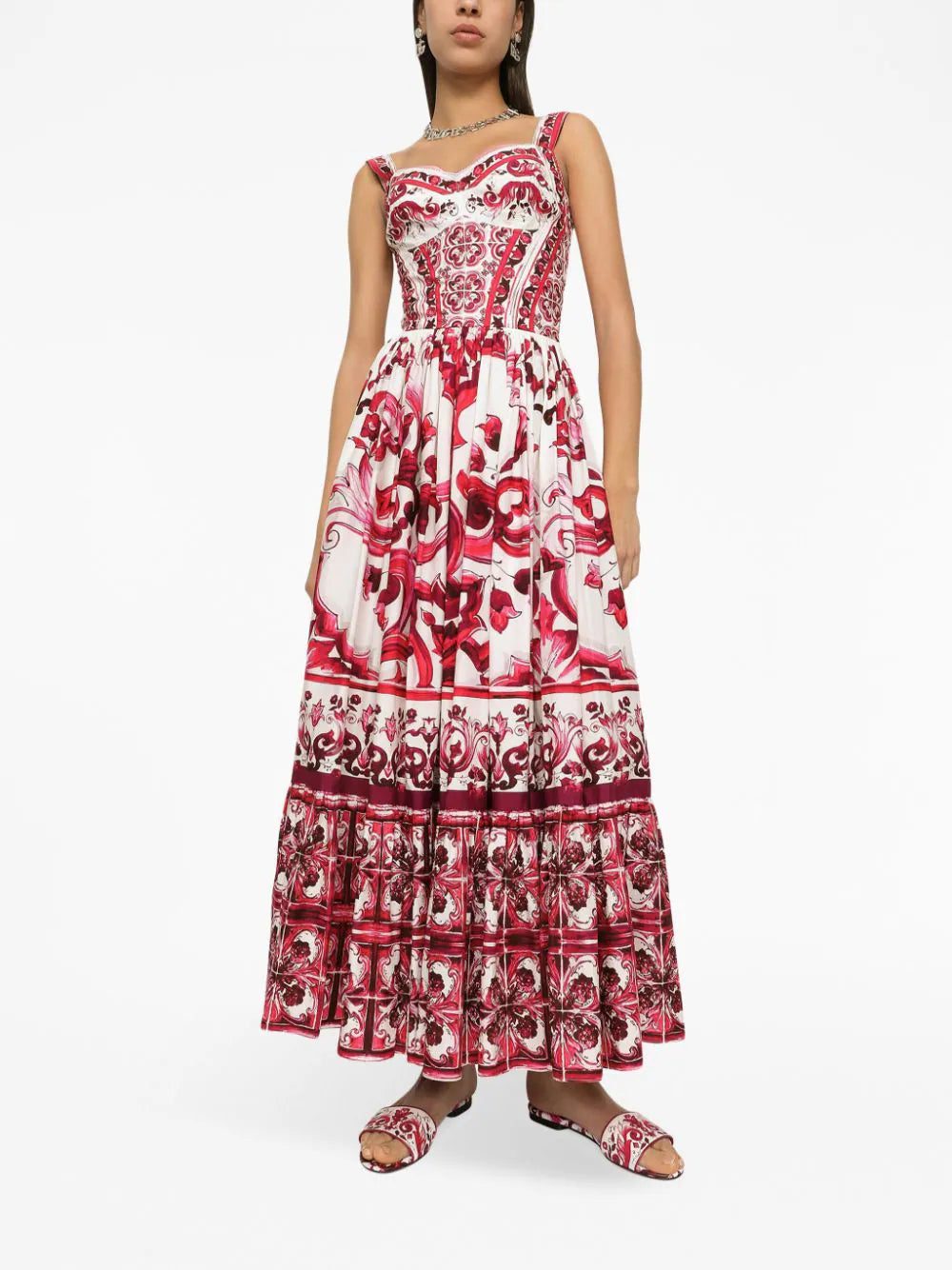 Dolce & Gabbana Majolica-print cotton bustier dress