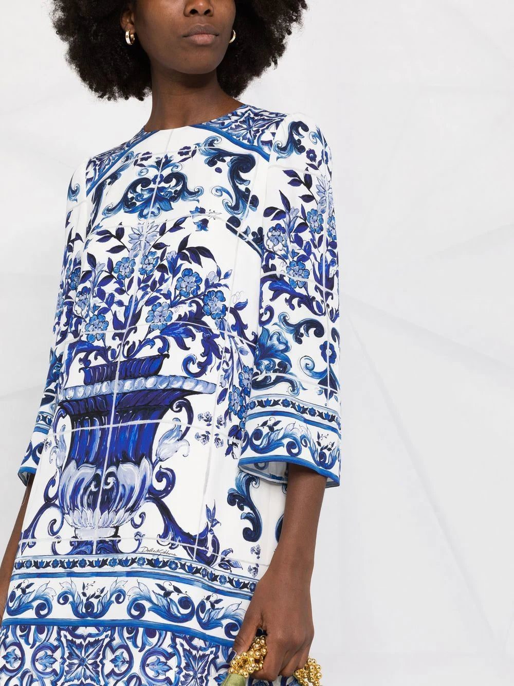 Dolce & Gabbana's signature Majolica print patterns this dress as part of the SS22 collection. This vibrant colourway and stretch silk construction contribute to this breezy style.