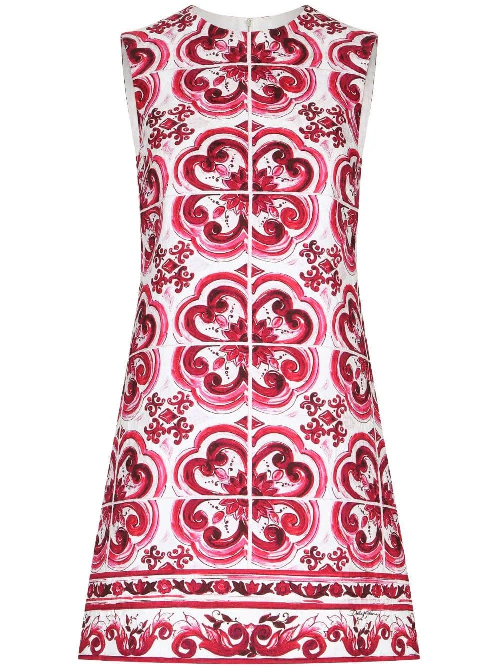 This short dress from Dolce & Gabbana's AW23 collection has the brand's signature Majolica design. The striking motif, which takes its cues from the artwork seen on Mediterranean pottery, honors the house's Sicilian heritage.