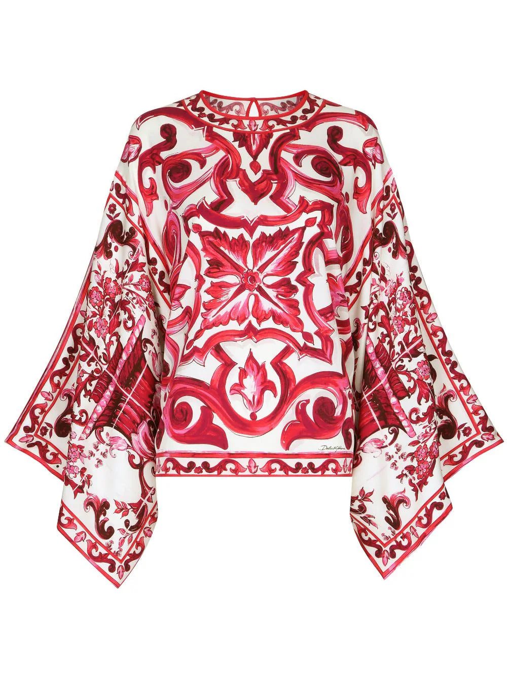 Dolce & Gabbana's bold approach to opulence is showcased in this billowy blouse from the AW23 collection. Featuring an all-over Majolica print and relaxed silhouette, the garment is framed by wide long sleeves.