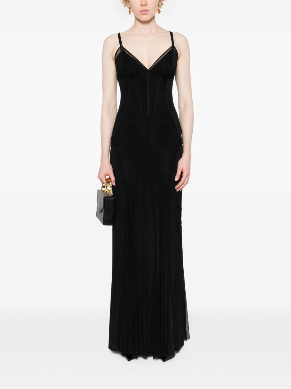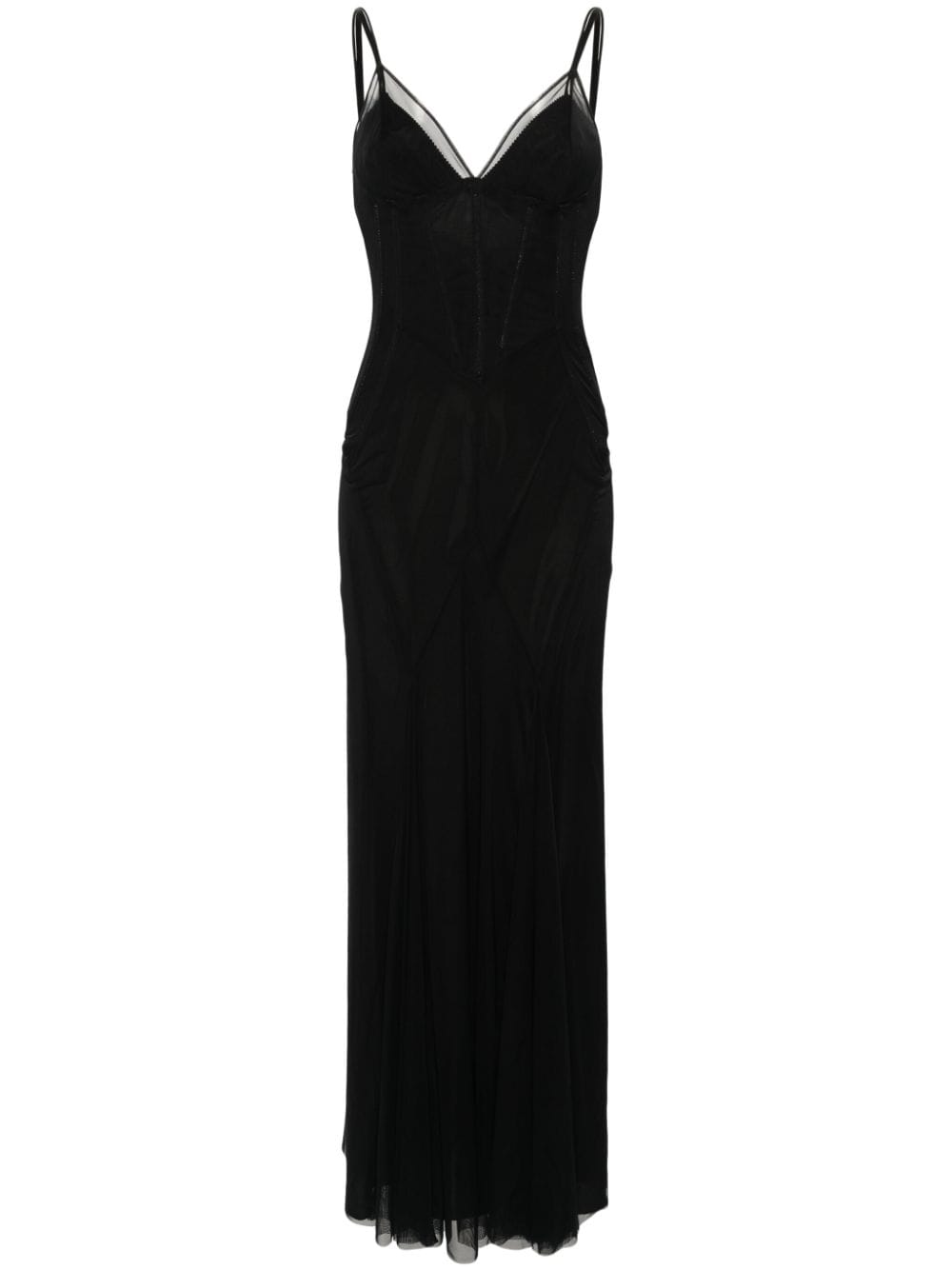 Constructed from a black silk-stretch blend- this maxi dress boasts a mesh design with a boned bodice and detachable slip dress.