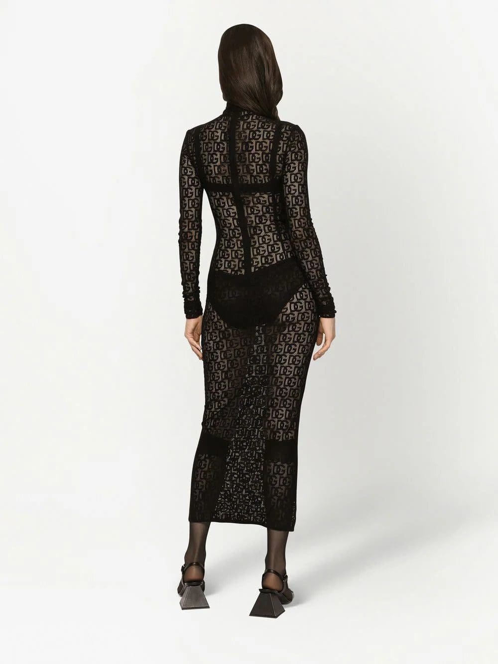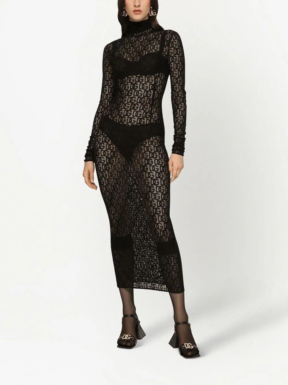 Dolce & Gabbana's bold approach to design is evident on this midi dress. Presented in a black colourway, it's constructed from sheer mesh with the signature DG monogram all over, offering a branding-focused finish.