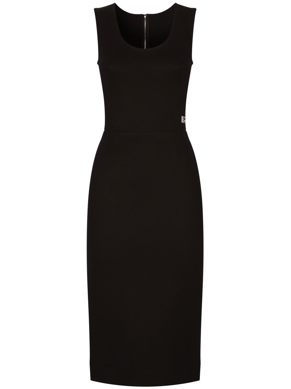 logo plaque-detail midi dress from DOLCE & GABBANA featuring black, stretch-design, logo plaque, scoop neck and rear zip fastening.