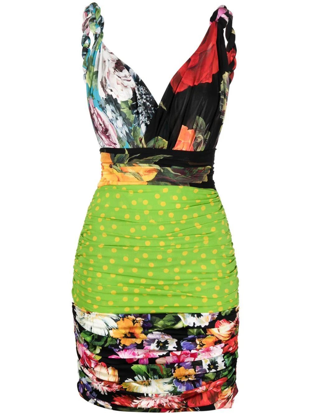 The party doesn't start until you walk in. Crafted with a patchwork design and an open back, this fitted mini dress from Dolce & Gabbana will get all eyes on you. Get ready to dance the night away.