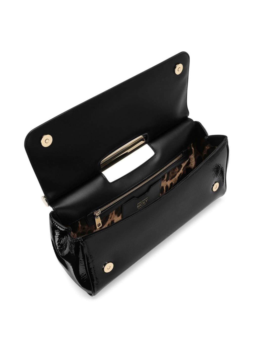 This black clutch bag by Dolce & Gabbana boasts a sleek and refined aesthetic with a monochromatic finish. Fashioned from premium quality leather with a patent finish, it boasts a spacious internal compart contrasted by a leopard print lining.