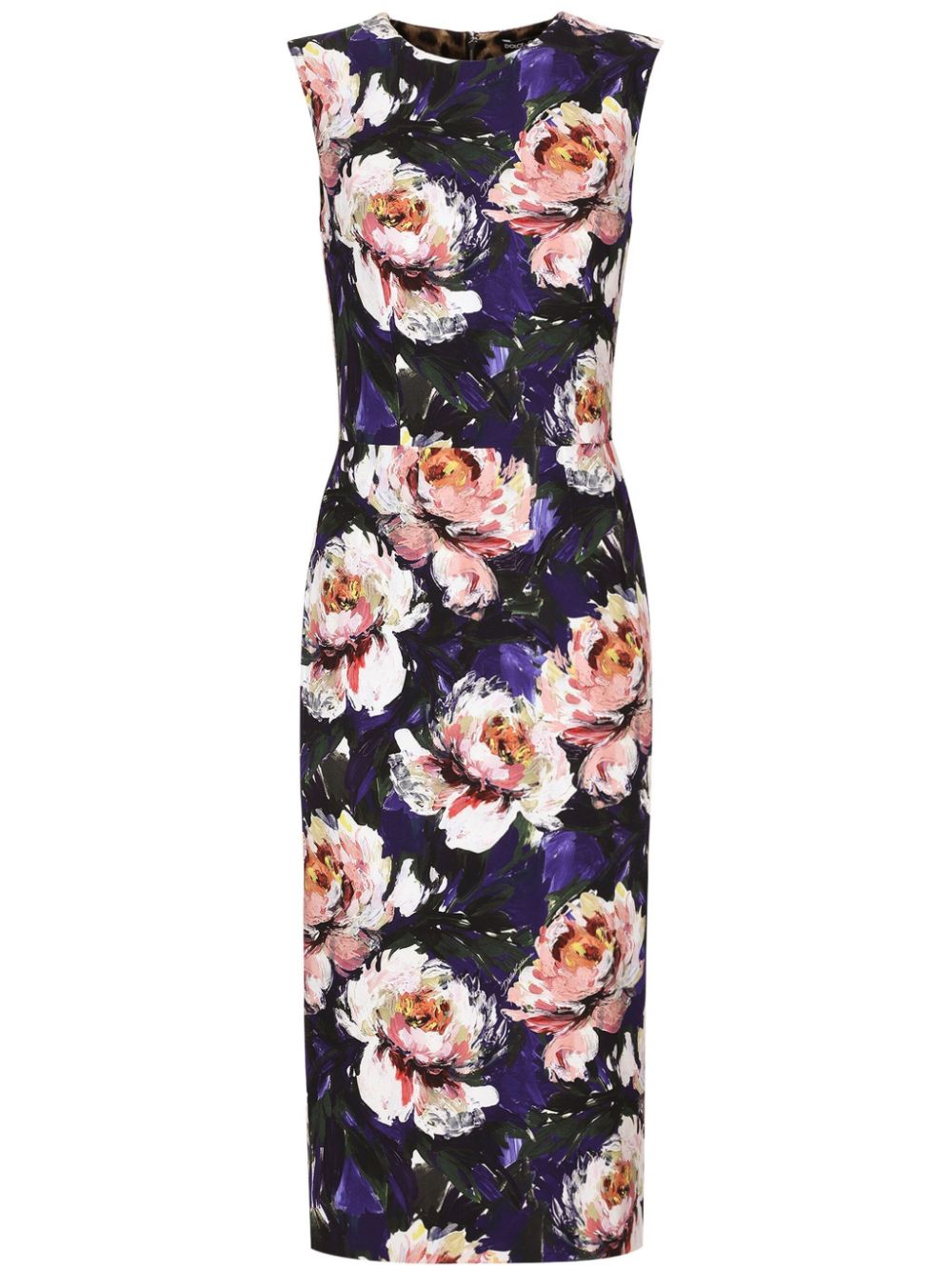 This Dolce & Gabbana dress decorated with a painterly peony print that looks as though its been brushed directly on the stretch-jersey base.