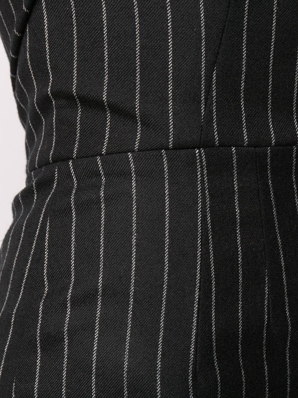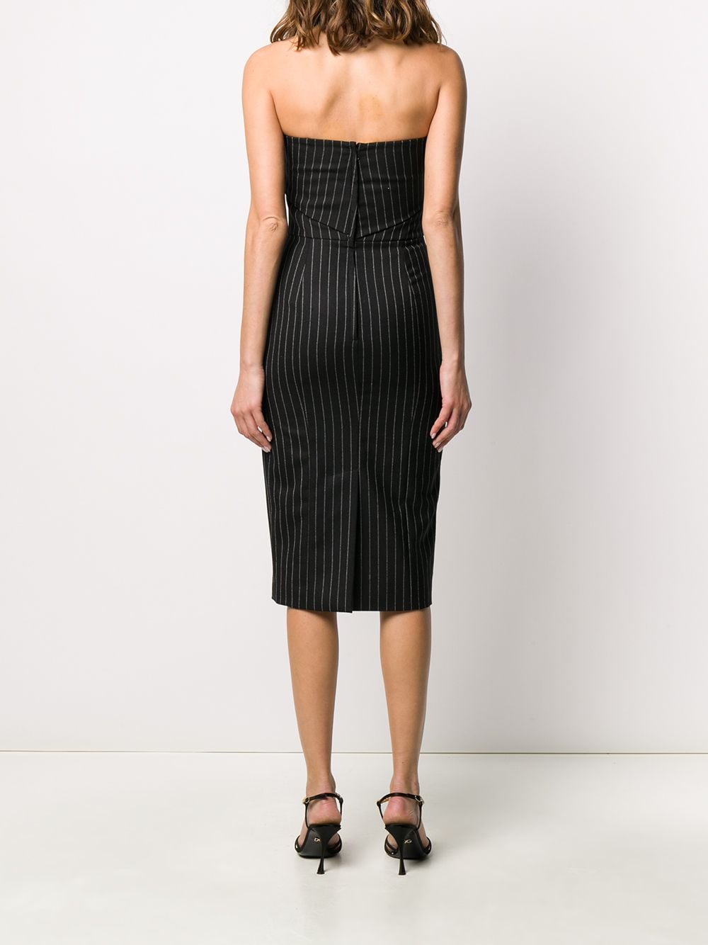 Don't be scared to show your true colours. This black and grey wool blend pinstriped strapless fitted dress from Dolce & Gabbana will make you want to show your true stripes. Being yourself has never looked this good. Featuring pinstripes, a strapless design, a fitted silhouette, a mid-length, a concealed rear zip fastening, a back slit at hem, a full lining and a bustier top.