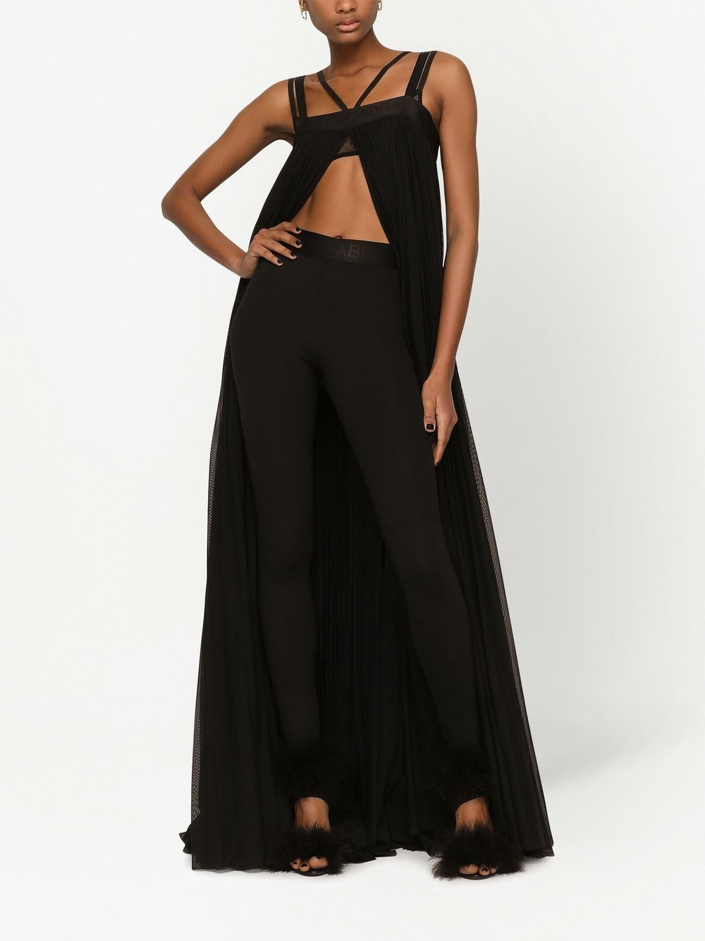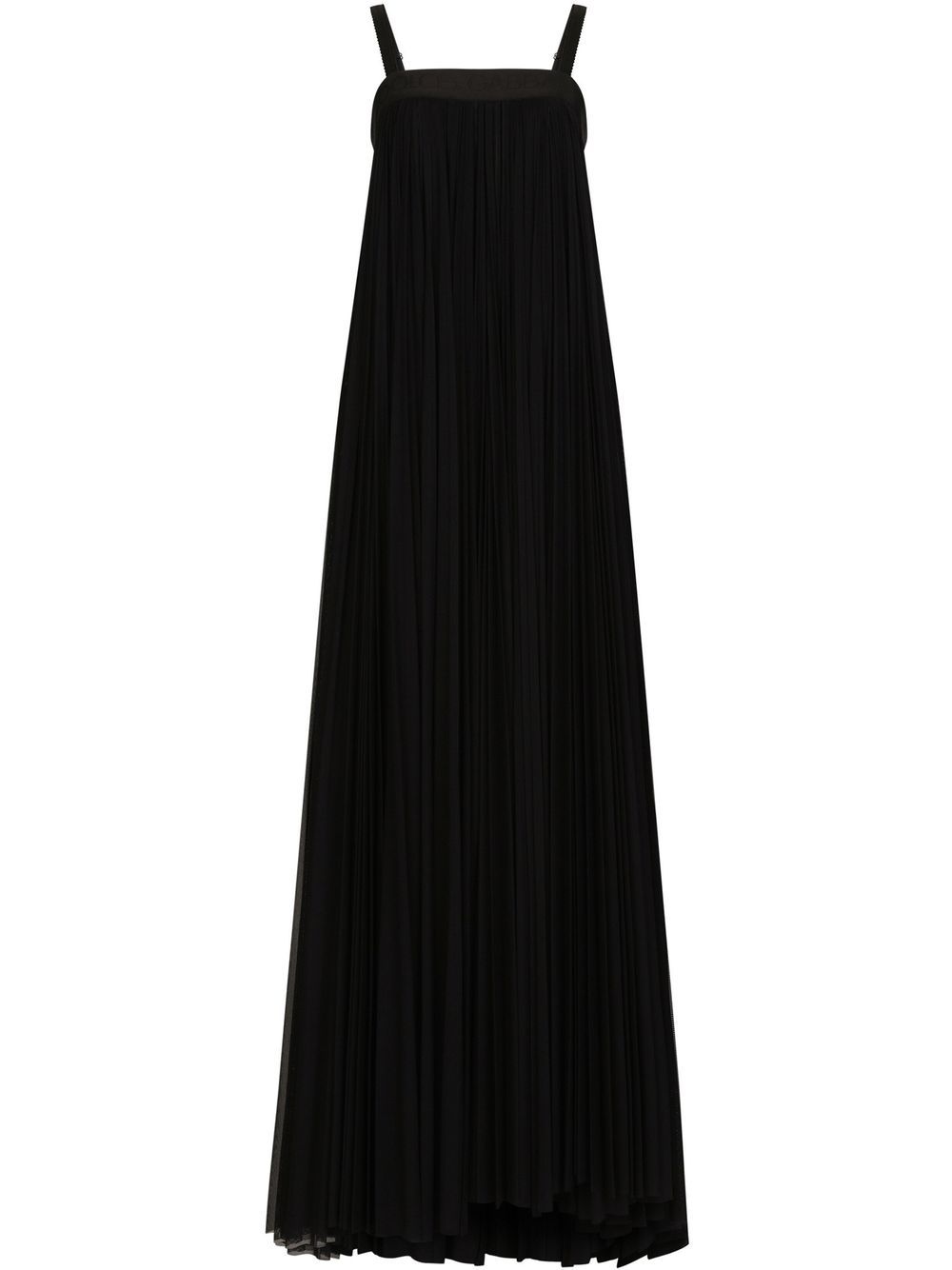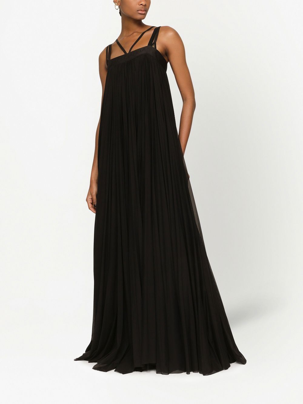 Dolce & Gabbana blends sophisticated elegance with modernity in the graceful design of this tulle dress. Draped to the floor, the pleated construction features a front slit that works its way up to the chest, evoking a contemporary twist in the piece.