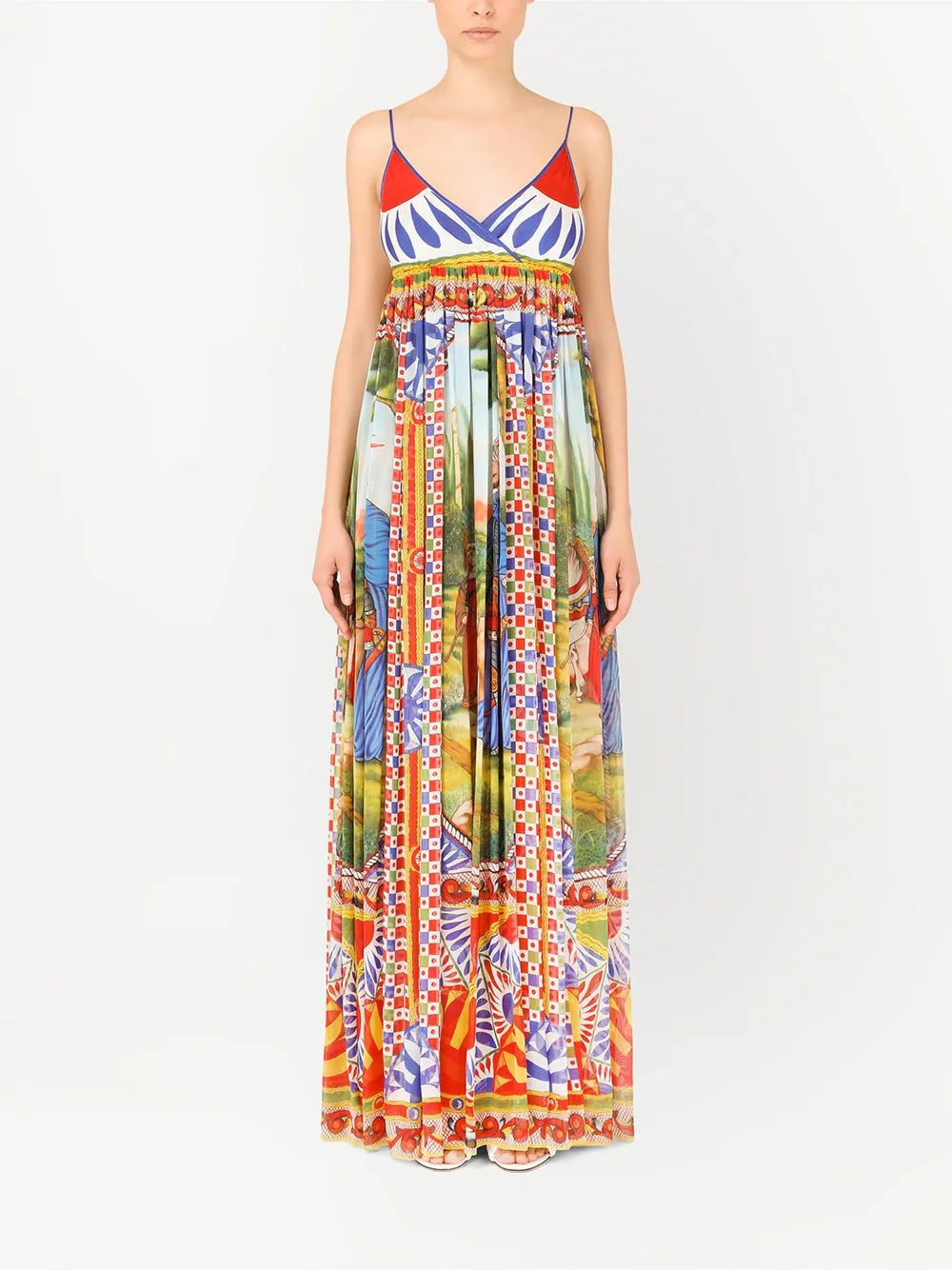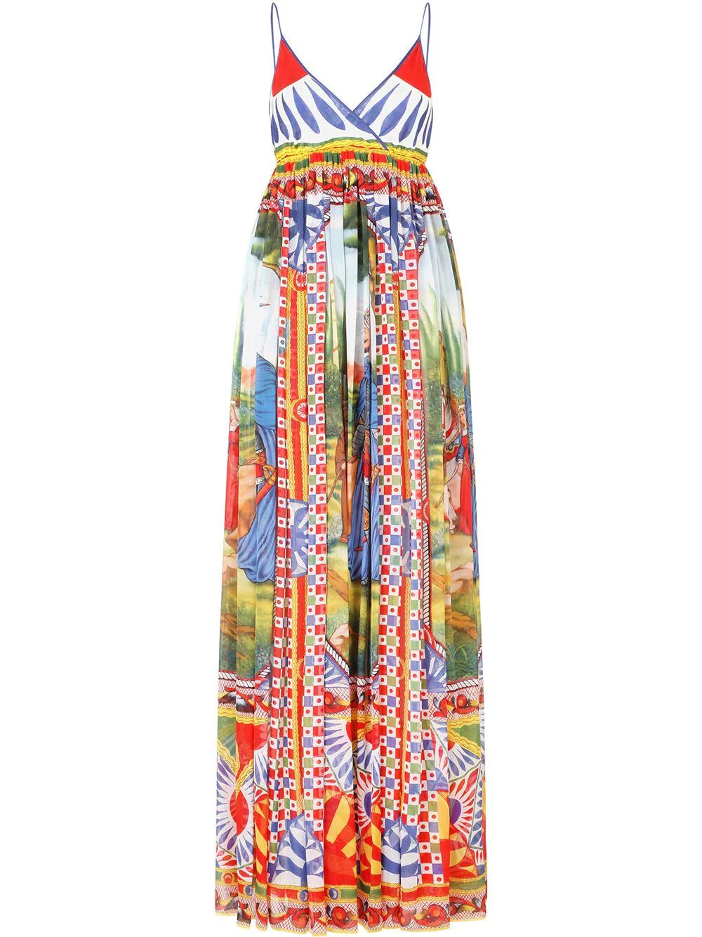 Summer means just one thing: bold colours. Decorated with a mixed print, this long dress fits all the requisites. You can't go wrong with a Dolce.Â