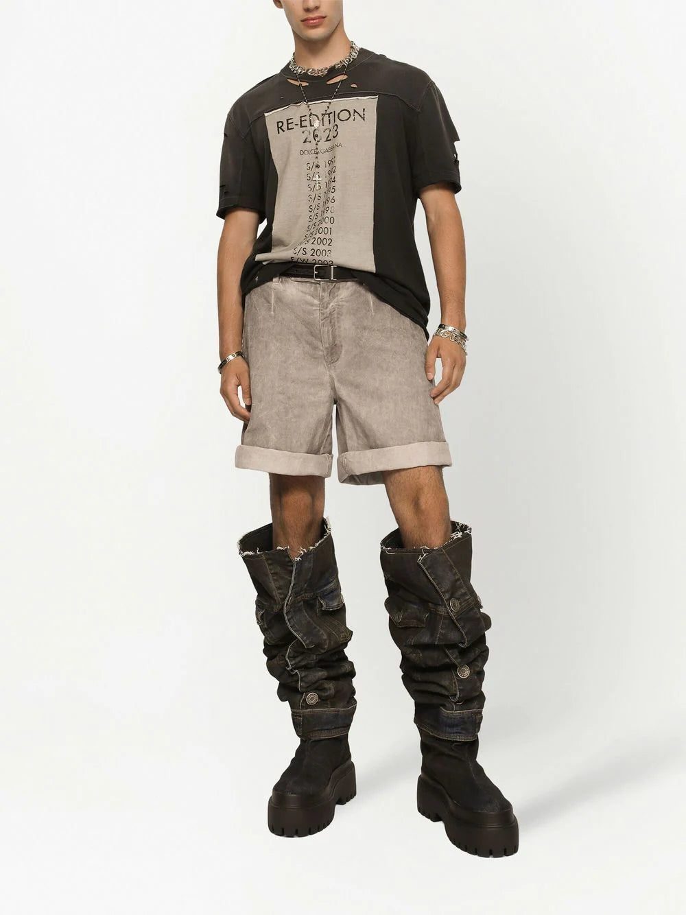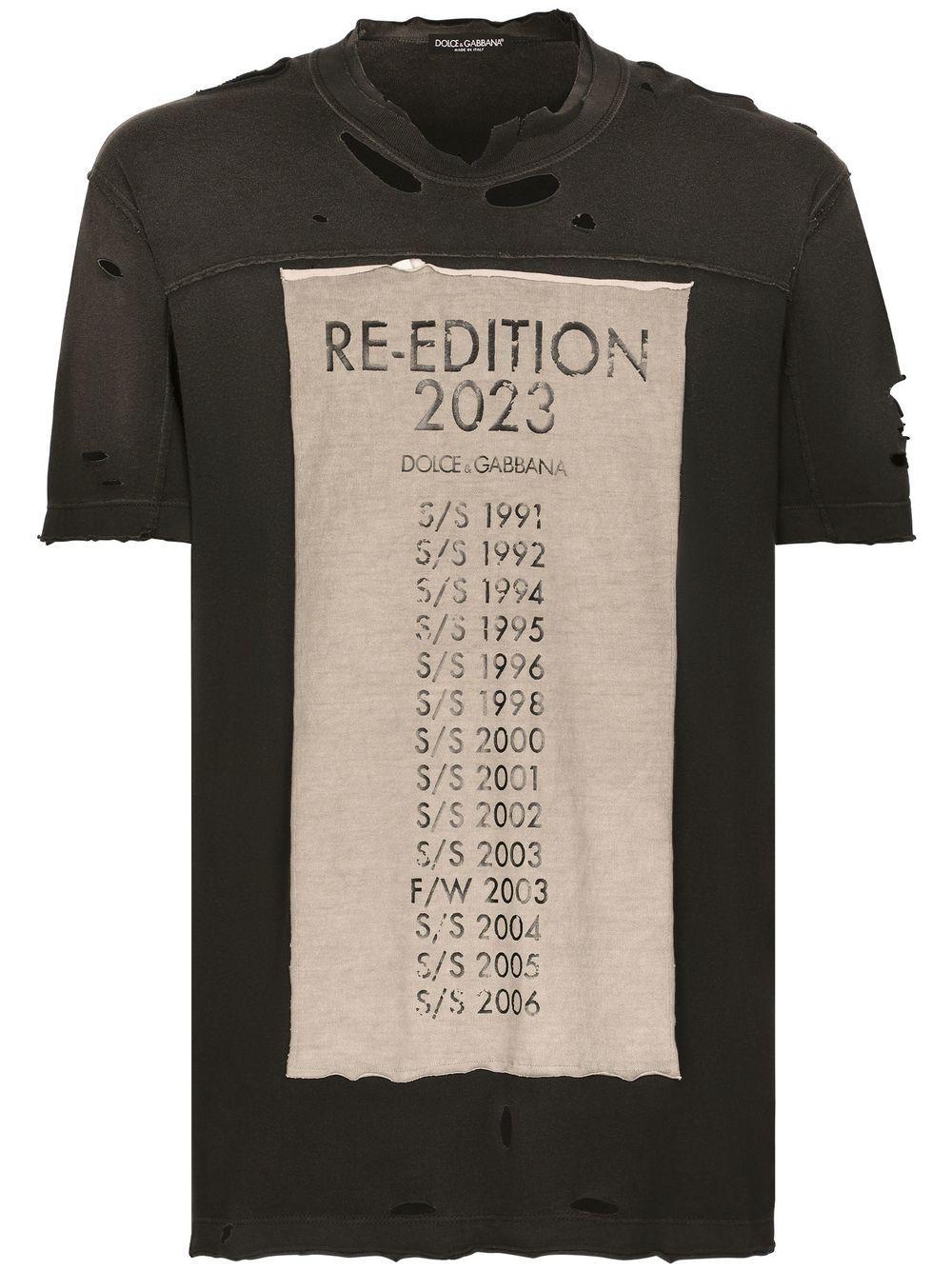 Re-Edition 2023 print T-shirt from DOLCE & GABBANA featuring jet black, cotton, distressed detailing, Re-Edition 2023 print, round neck, short sleeves and straight hem.