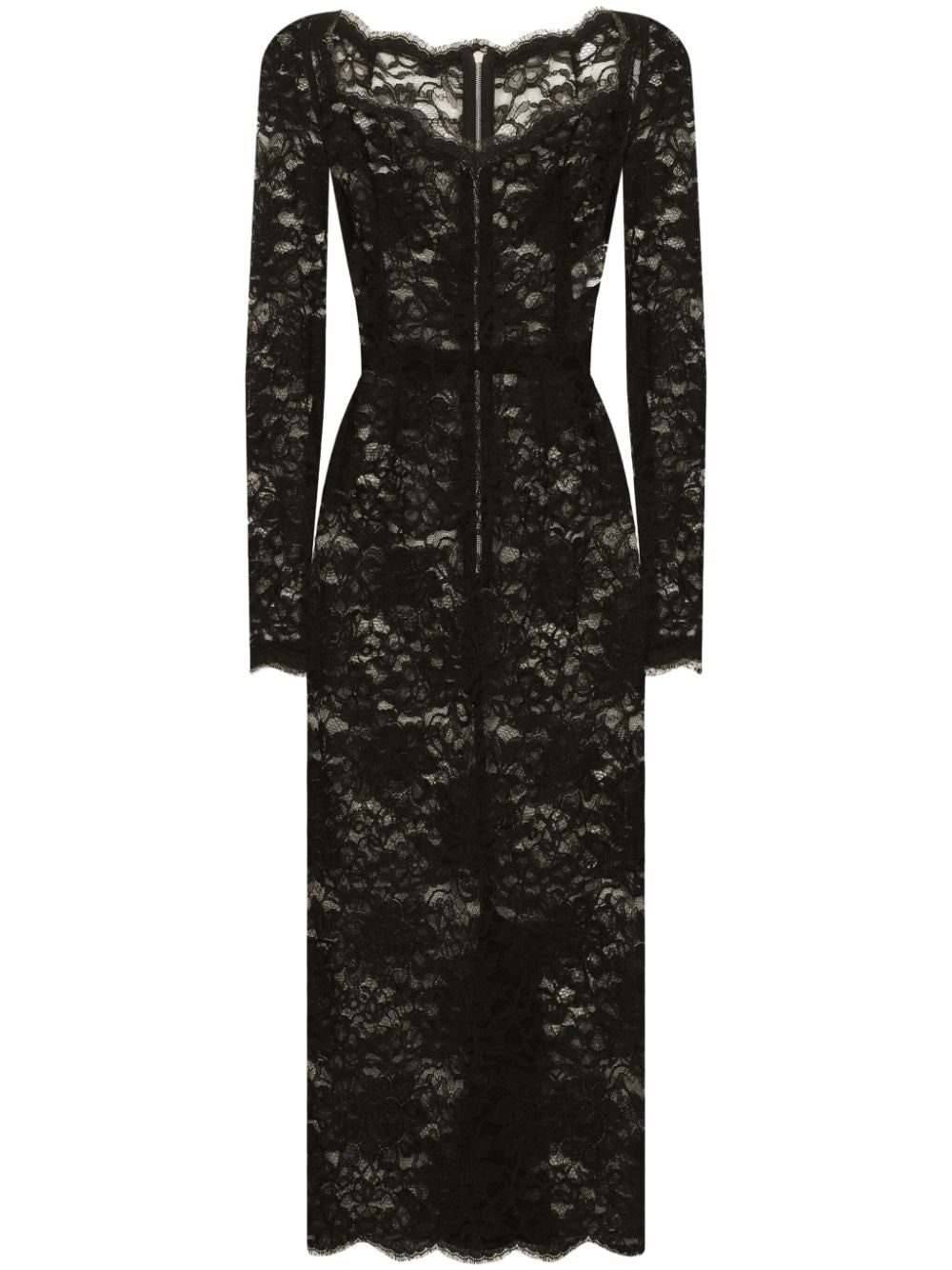 Dolce & Gabbana's glamorous style is sometimes showcased by the lingerie-inspired elements of its designs. A testament to that, this black dress is crafted from floral lace with strategically placed semi-sheer panels.