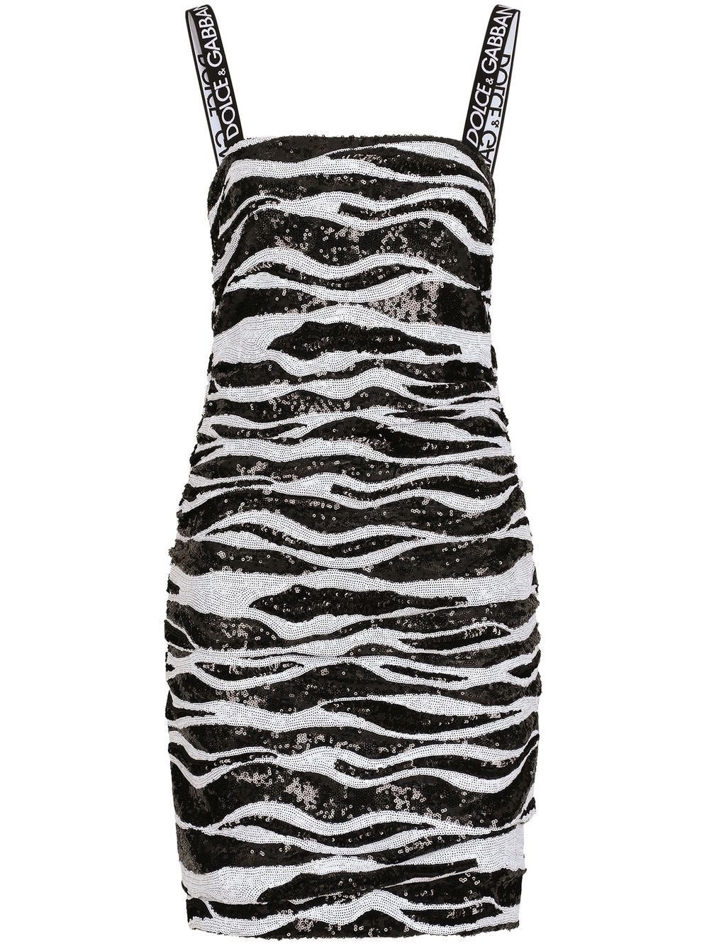 Animal prints and extravagant embellishments are pillars of Dolce & Gabbana's DNA. This dress from their AW22 offering attests to their usual standards, thanks to its zebra print design that's brought to life by shimmering sequins.