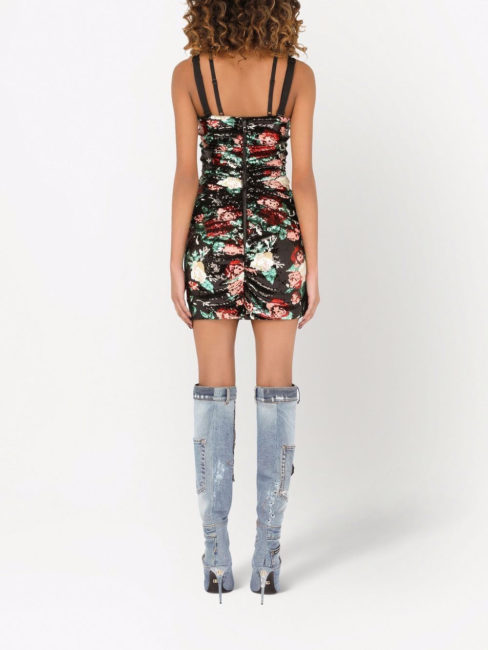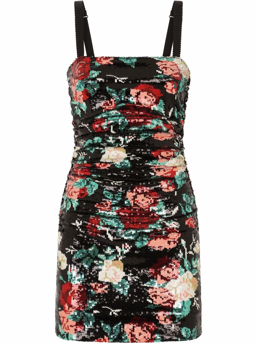 Dolce & Gabbana's statement and heavily embellishment aesthetic is perfectly embodied in this mini dress, part of the brand's SS22 collection. Covered in sequins that create a signature floral motif with ruched details for added texture.