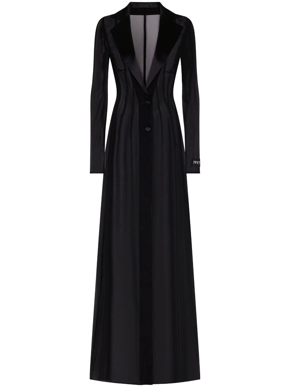 Dolce & Gabbana's signature opulent style is showcased in an innovative way on this long-sleeve dress through shawl lapels and semi-sheer material.Â