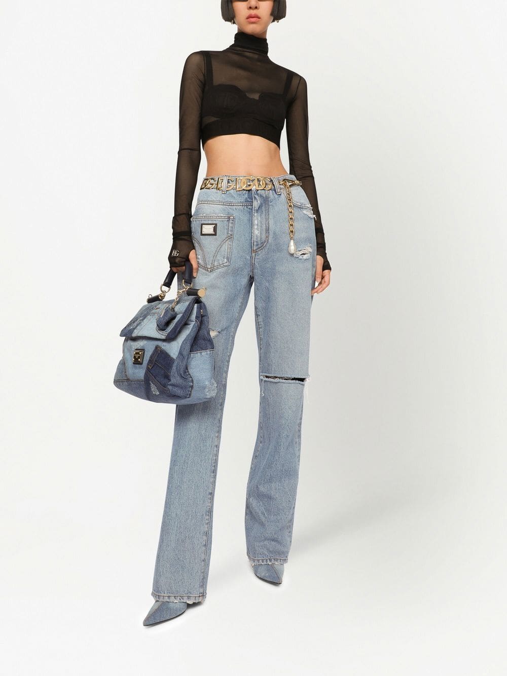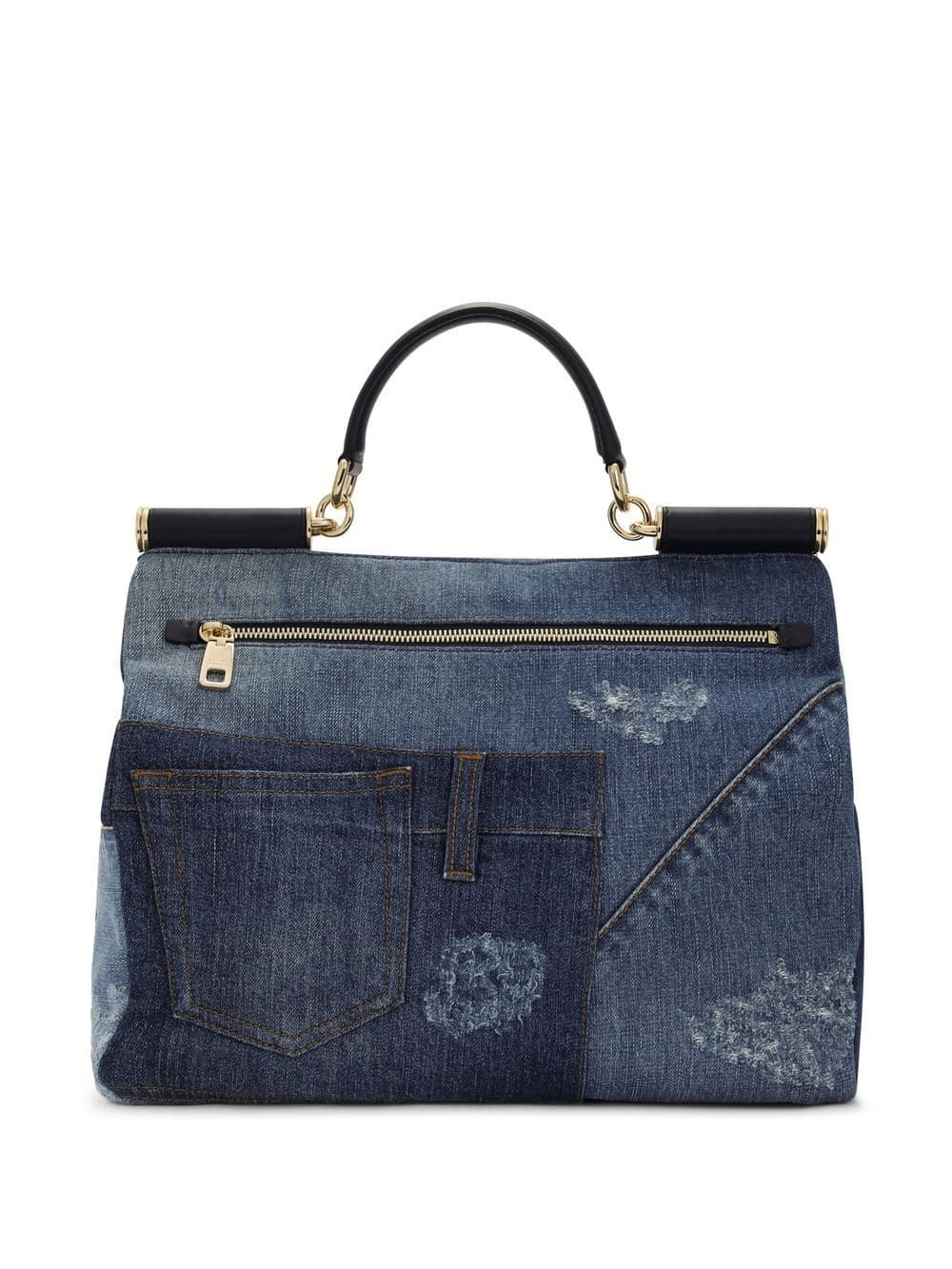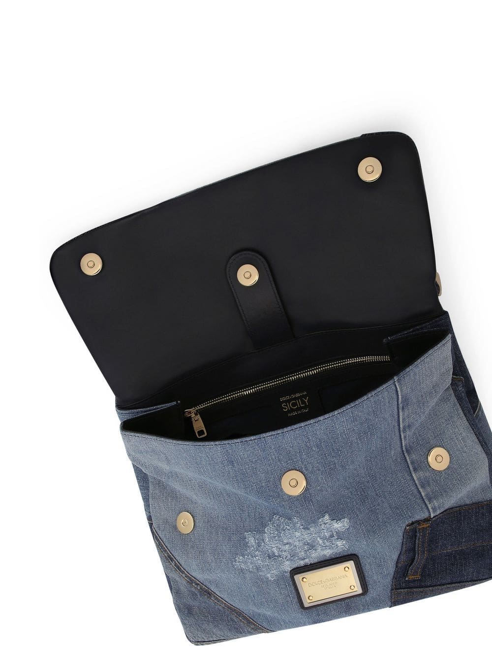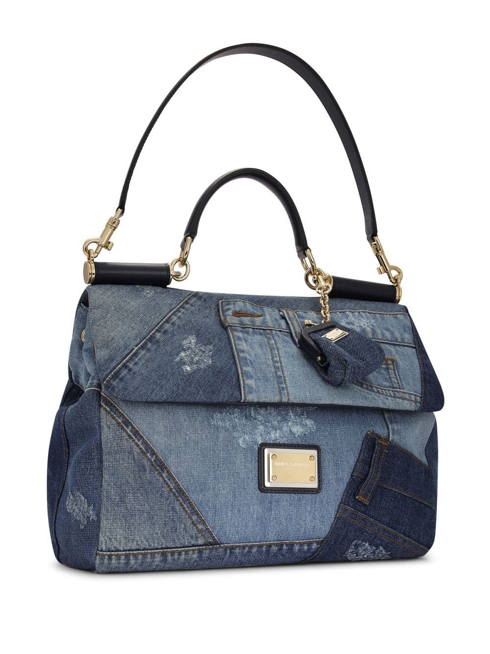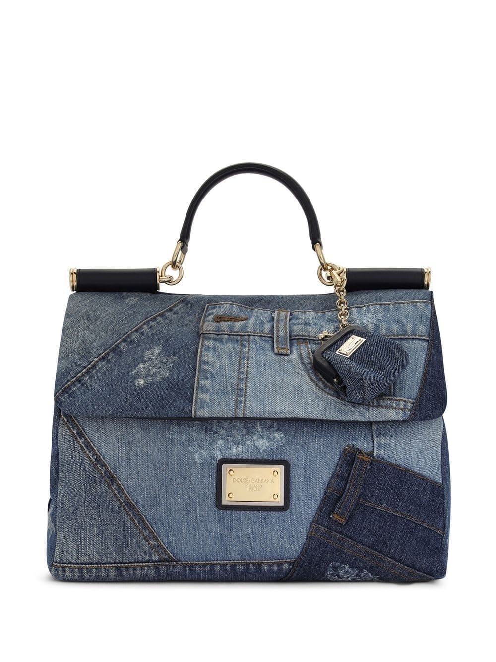 Dolce & Gabbana's mainstay Sicily bag receives a refreshing update in this version. Identified with their gold-tone branded plate to the front, the all-over denim patchwork construction achieves a contemporary finish.