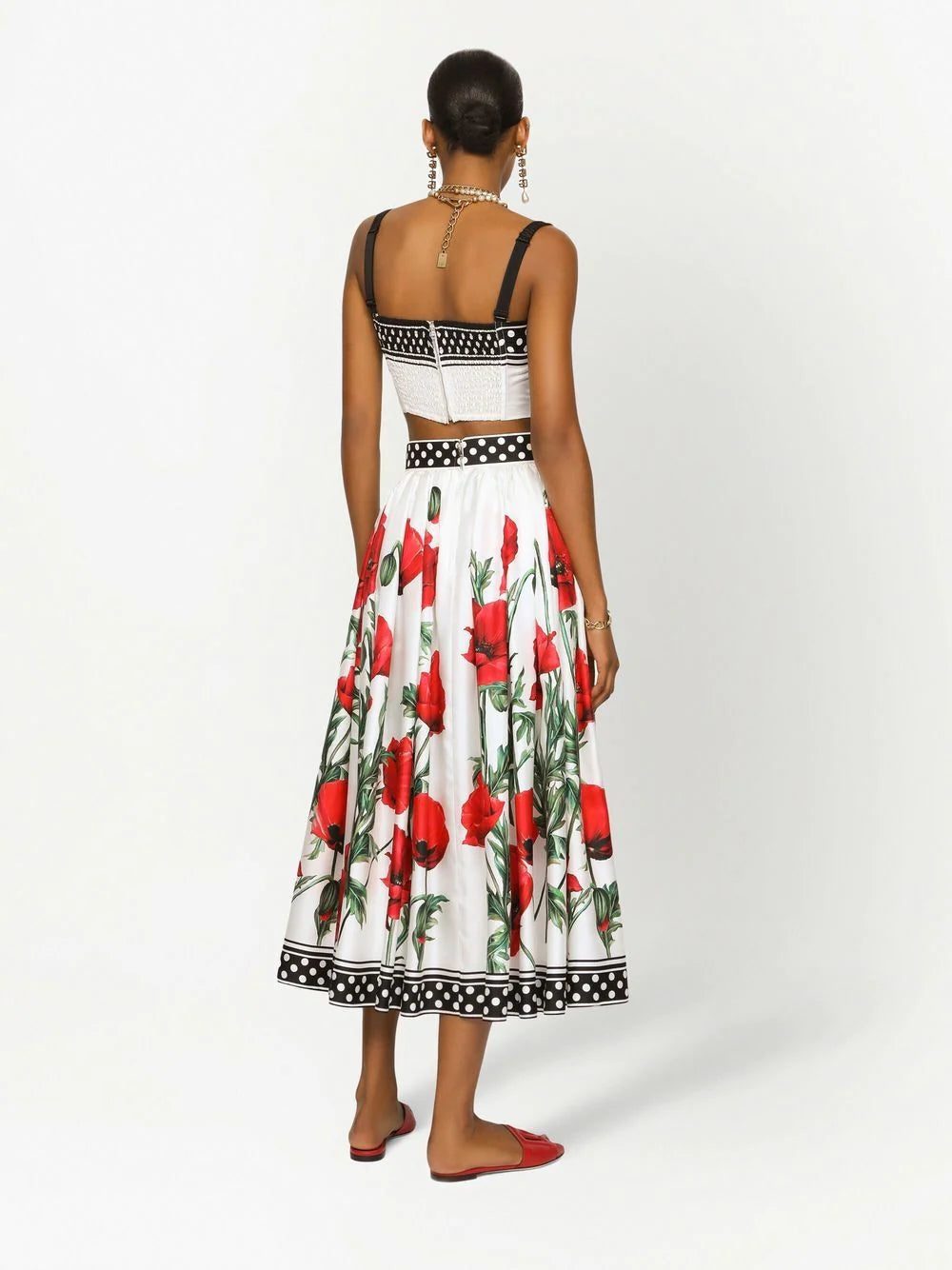 silk-tie cropped top from DOLCE & GABBANA featuring white/multicolour, silk, polka dot print, poppy print, front tie fastening, adjustable shoulder straps and rear zip fastening.