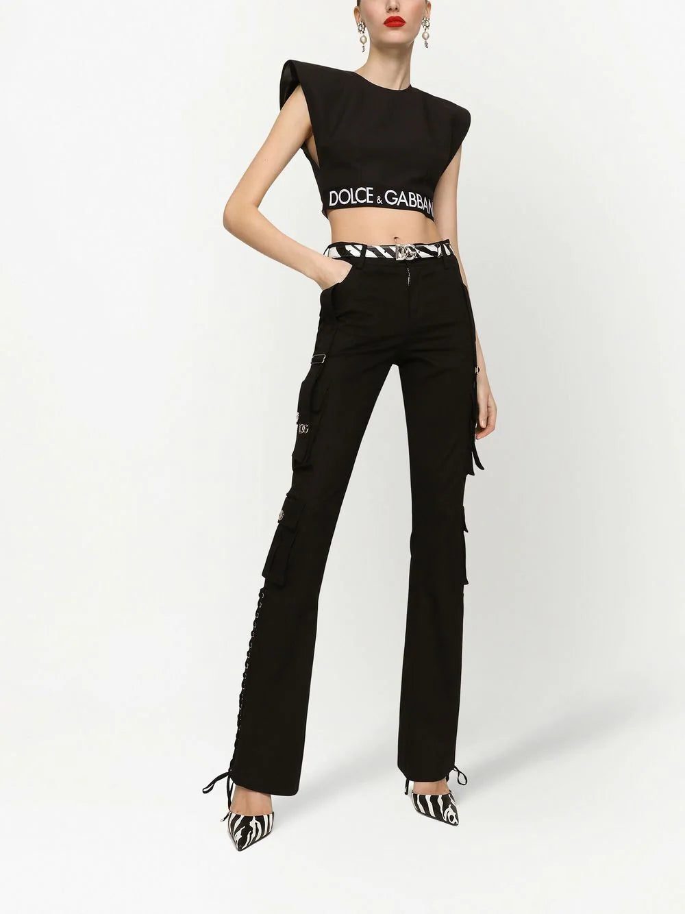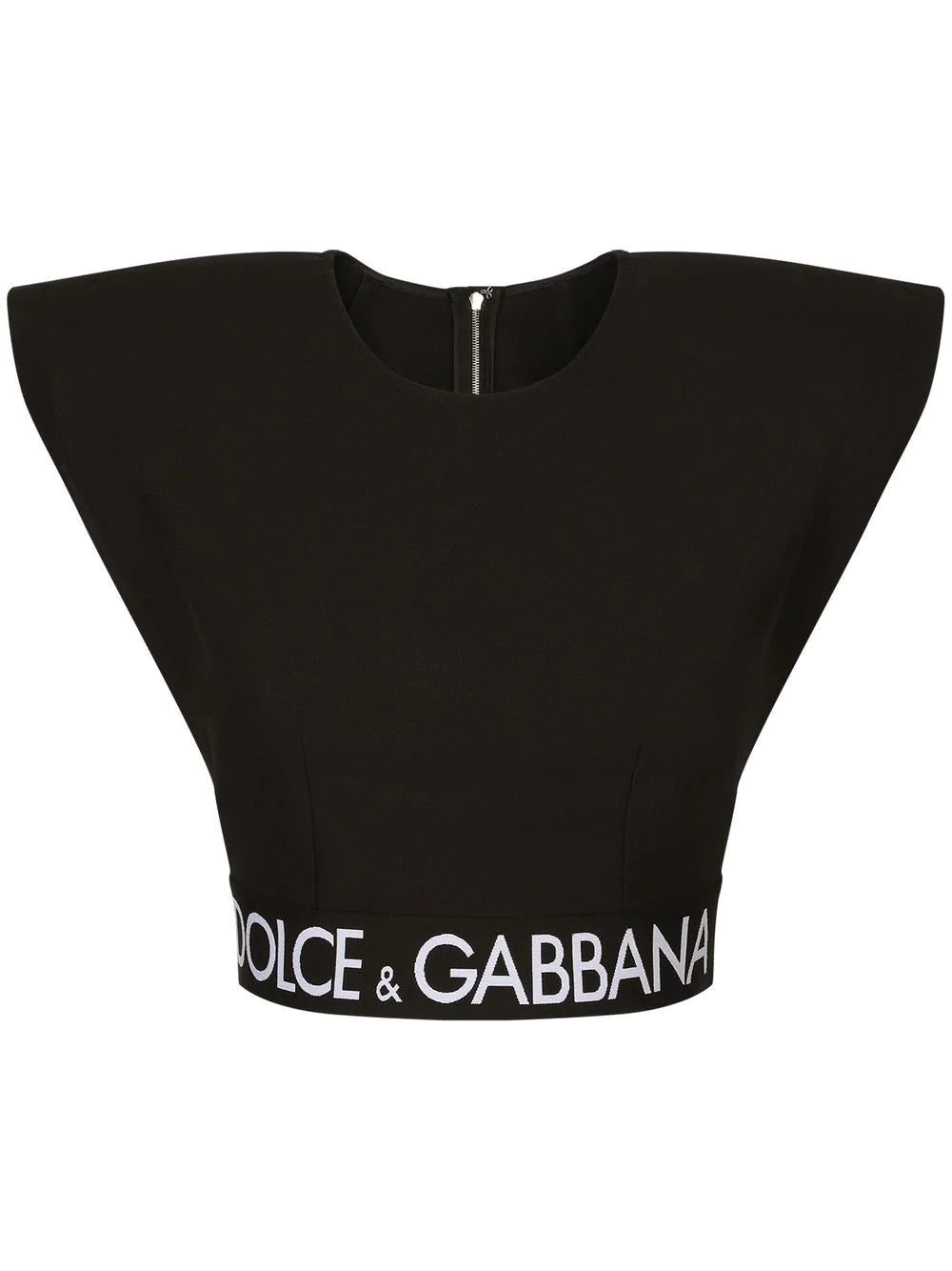 Dolce & Gabbana takes a refined approach to casualwear. Showcased on this sleeveless top from the AW22 collection, the garment features contemporary logo-tape detailing and shoulder pads which reflects the brand's signature boldness.