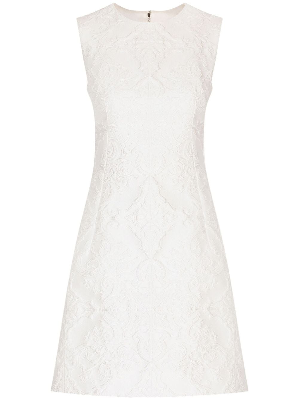 Dolce & Gabbana takes a minimalist approach with this sleeveless dress design. Presented in a monochromatic hue, the garment's patterned-jacquard material adds a creative element.Â