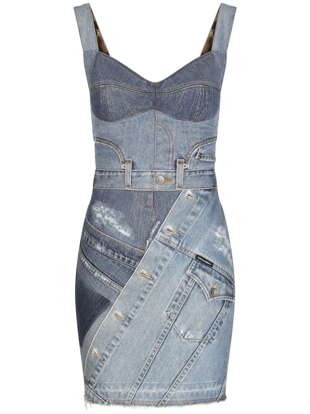 Since its inception in 1985, Dolce & Gabbana has continued to imbue each collection with a maximalist aesthetic. For SS23, this V-neck minidress takes inspiration from denim with the inclusion of belt loops and pocket detailing.Â