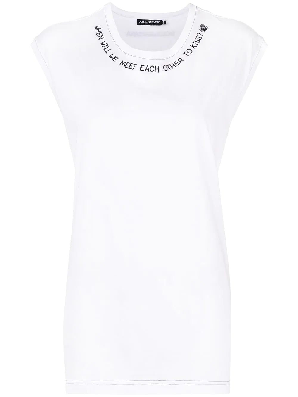 It's love at first sight. Fall for this white cotton tank top from Dolce & Gabbana, which has slogan lettering around the neckline and a logo print on the rear. Catch feelings.