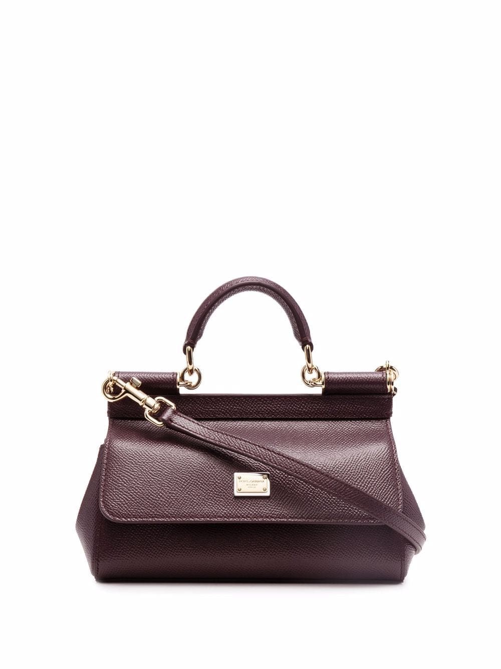 The Sicily tote bag from Dolce & Gabbana has cemented itself as an accessory classic. The timeless style is presented in a warm-brown hue for this small iteration, which is finished with gold-tone hardware.
