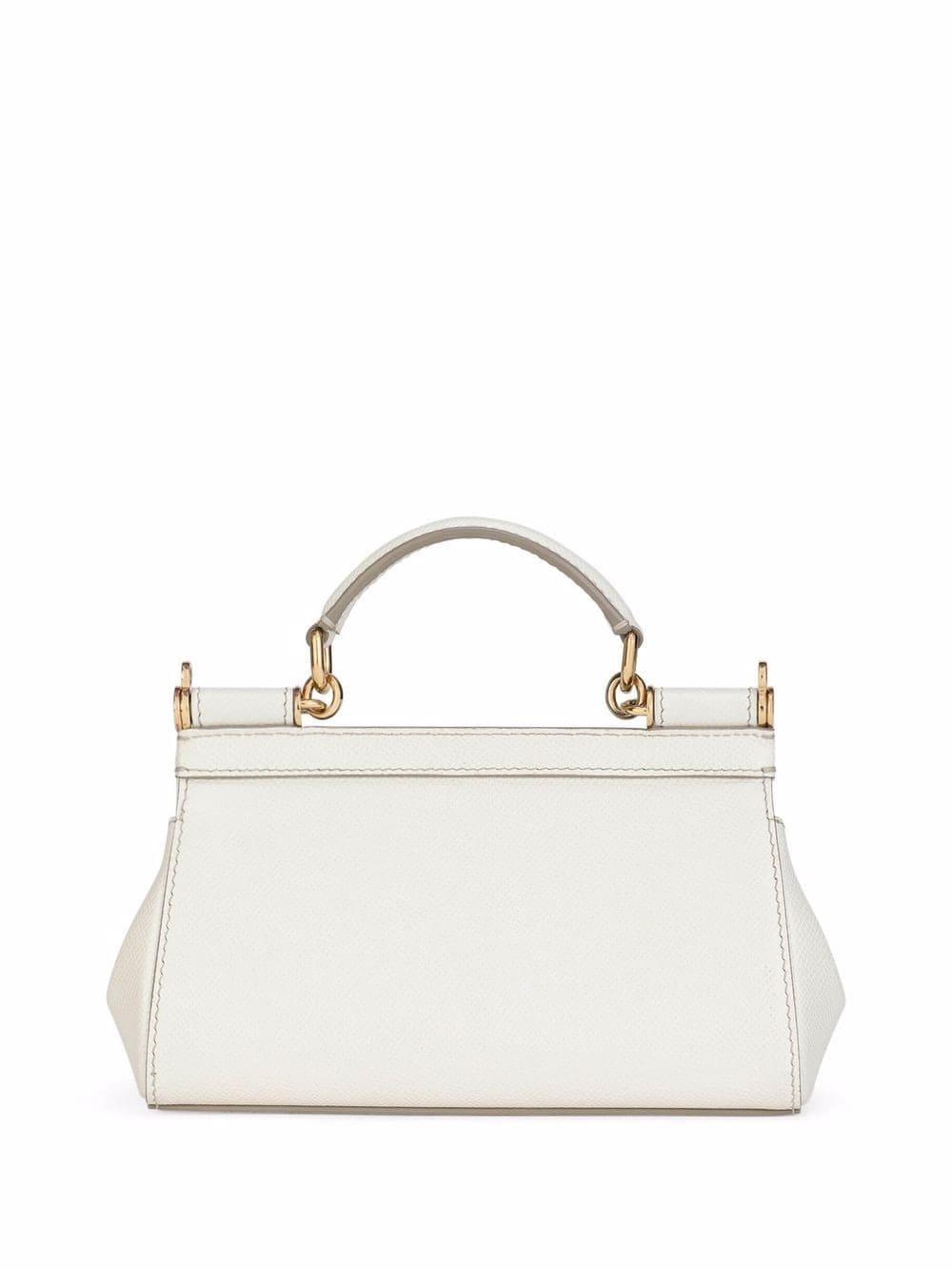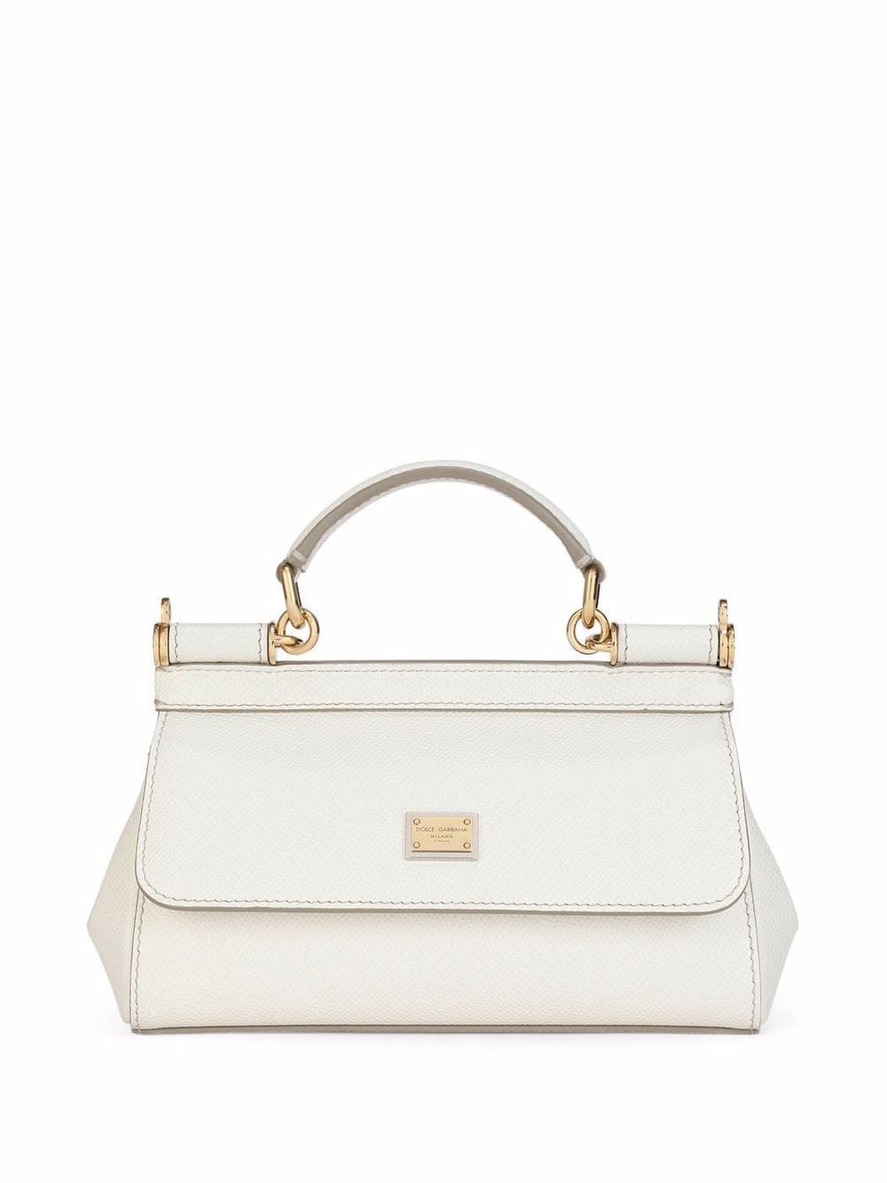The Sicily bag from Dolce & Gabbana has cemented itself as an accessory classic. The timeless style is presented in an optical white hue for this small iteration, which is finished with gold-tone hardware.