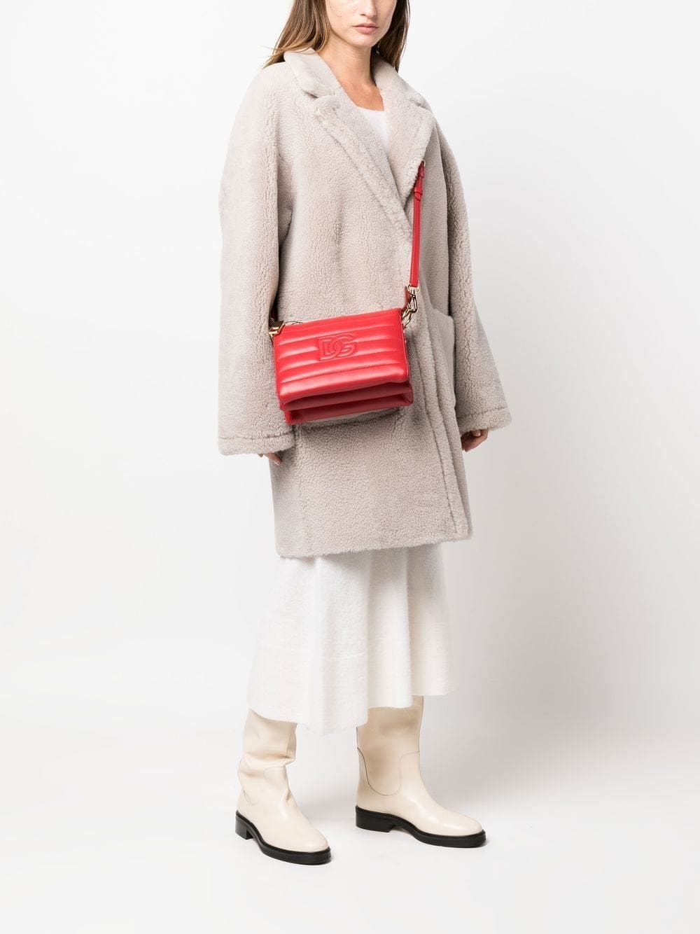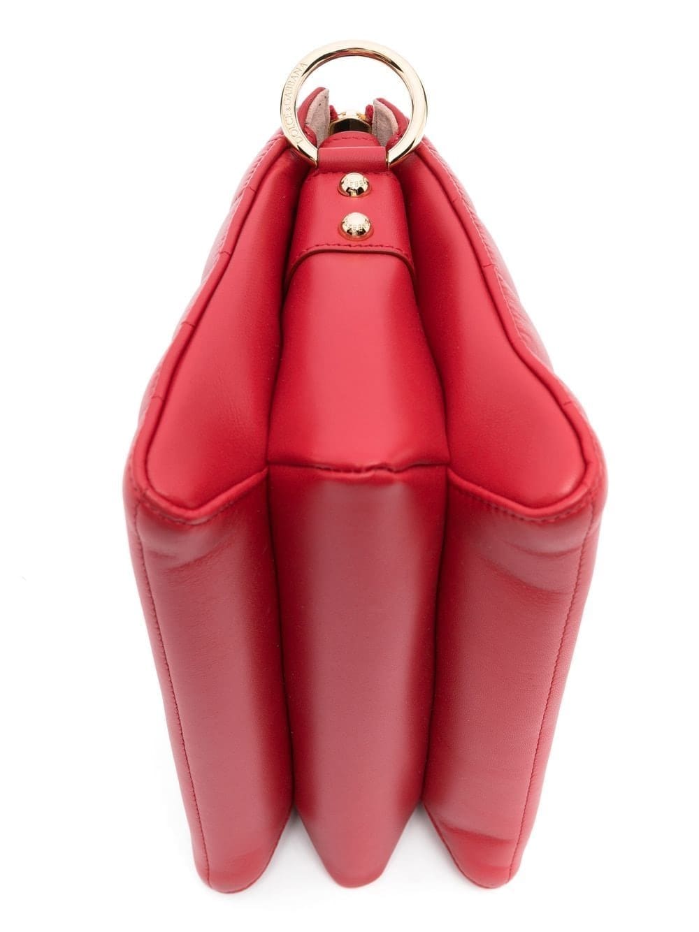 dark red lamb skin debossed logo to the front top zip fastening internal zip-fastening pocket adjustable shoulder strap