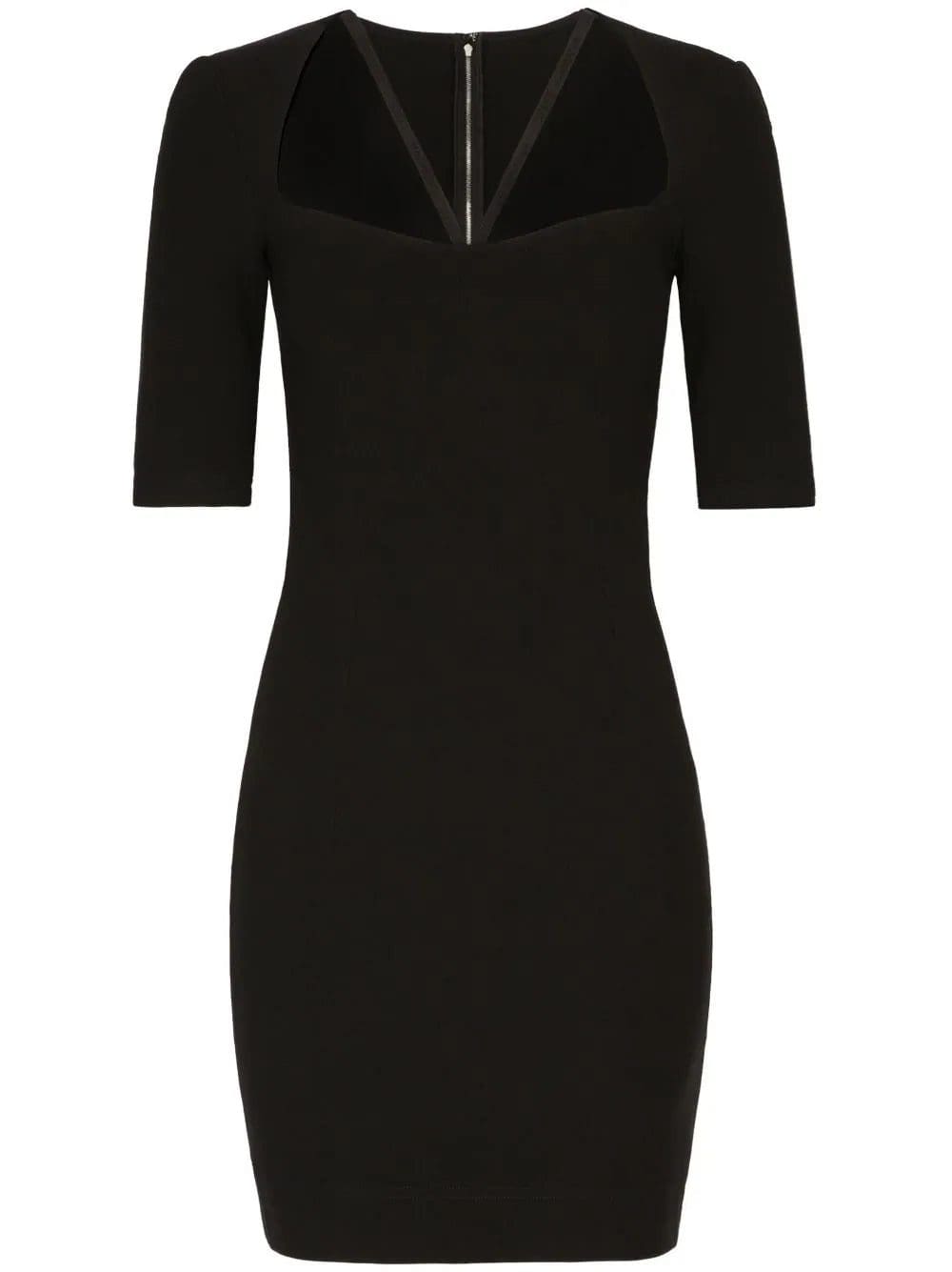Made in Italy from black stretch jersey, this minidress from Dolce & Gabbana reflects the house's penchant for bold silhouettes. Featuring half-length sleeves, the design boasts a square neckline elevated with thin straps.