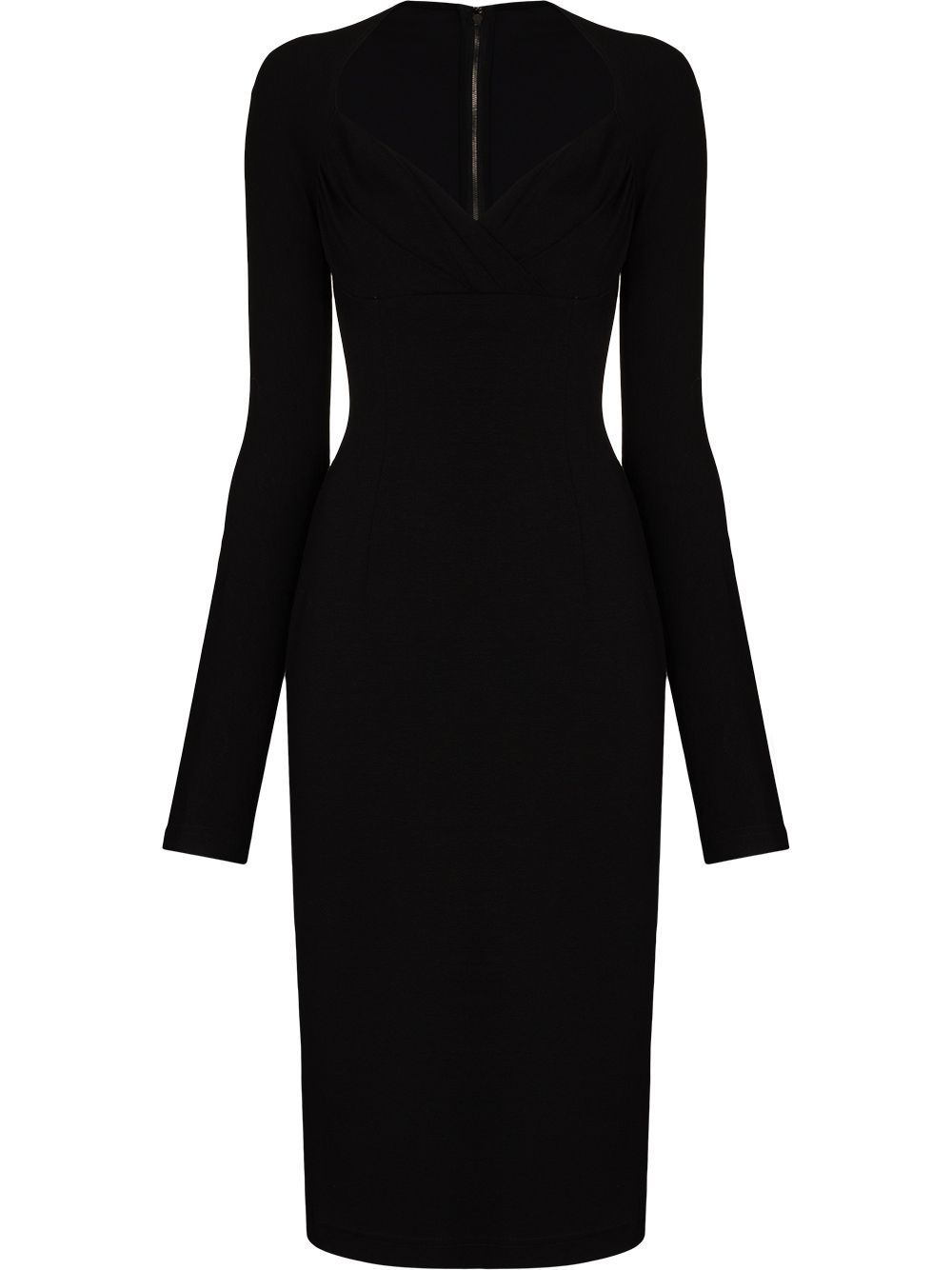 Crafted from stretch jersey, this black dress from Dolce & Gabbana is characterised by a sweetheart neckline. Cut for a bodycon silhouette, it features long sleeves and a midi length.