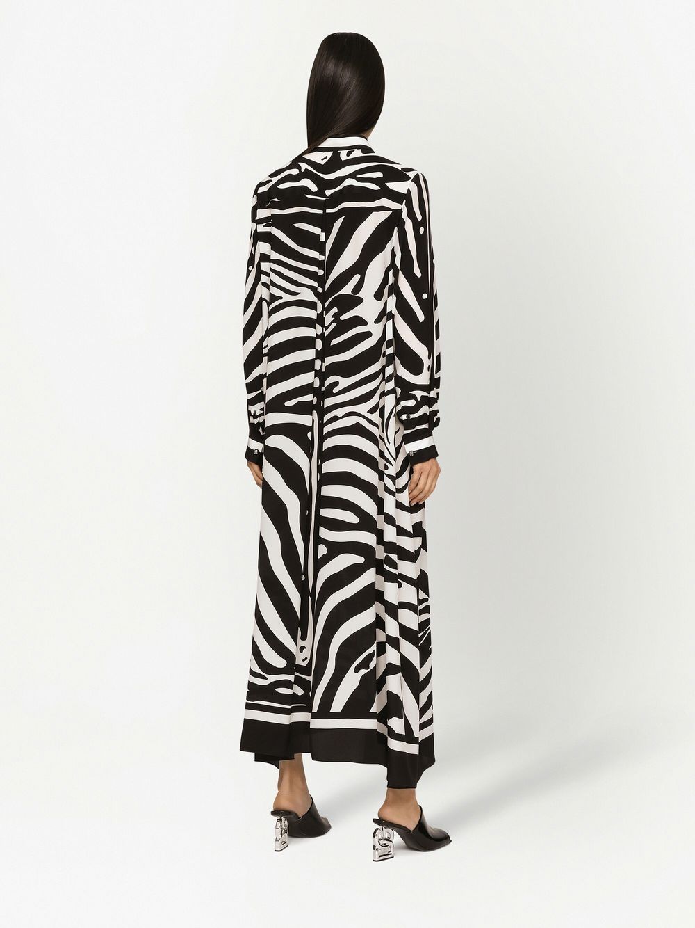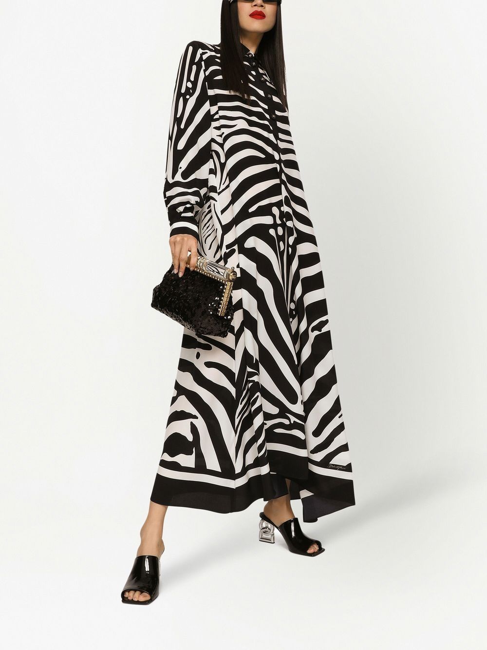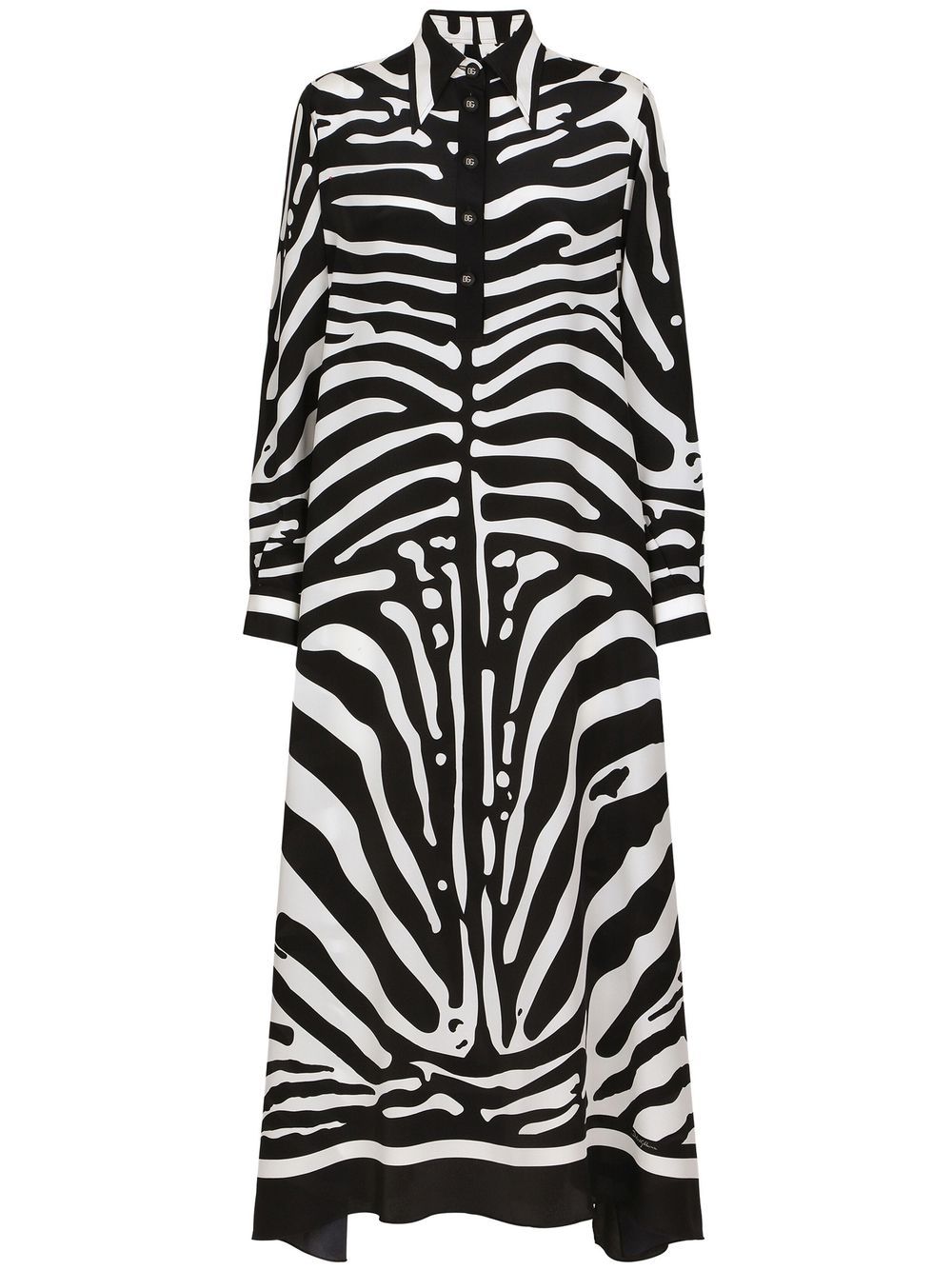 Distinctively Dolce & Gabbana, this kaftan shirt dress is characterised by the brand's new season zebra print and made from a lustrous silk crepe de chine. Luxurious materials and bold motifs are two pillars of the brand's DNA, and this eye-catching piece proves to be no exception.