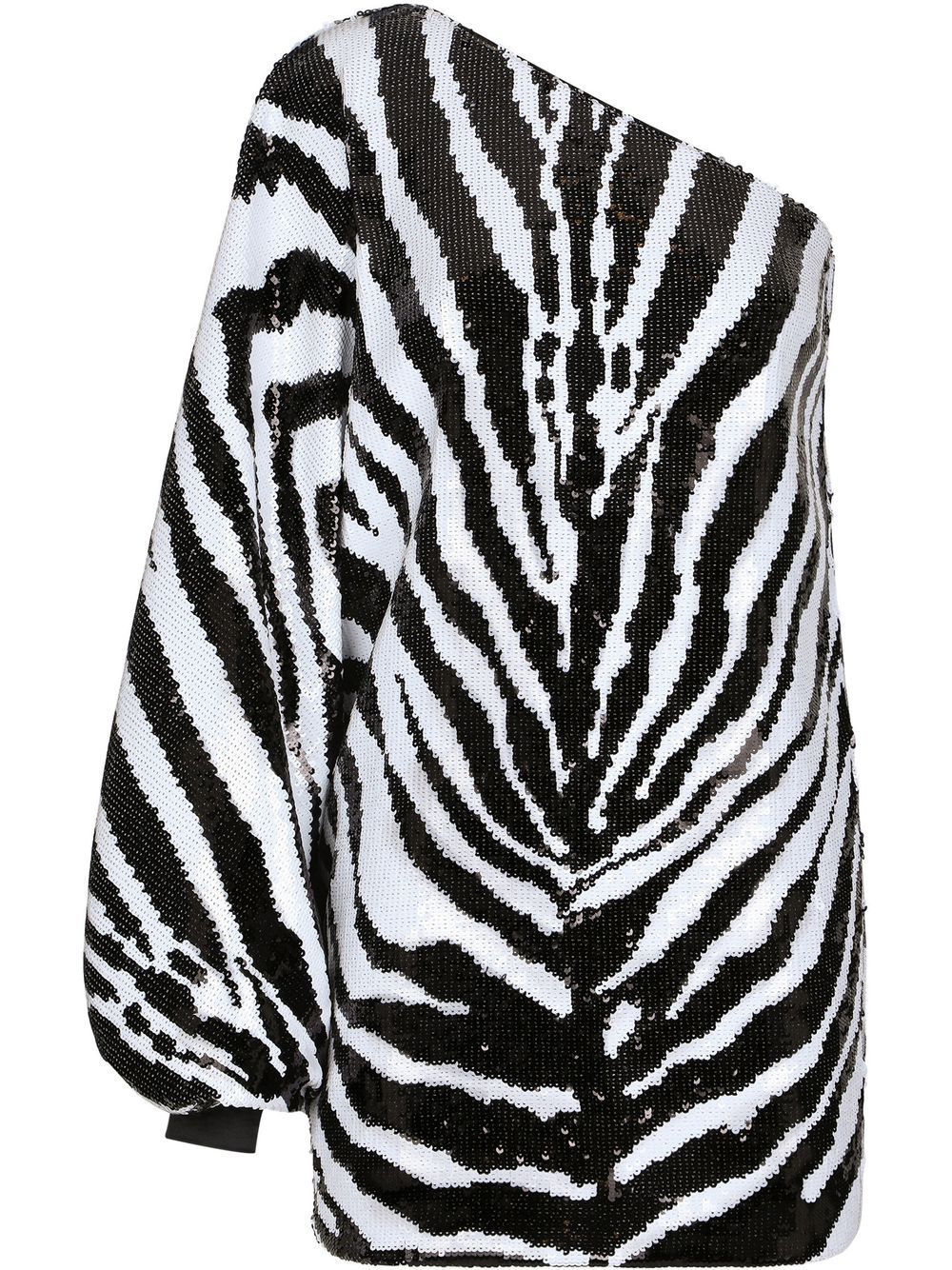 Dolce & Gabbana's signature bold approach to opulence is showcased in this one-shoulder dress from the AW22 collection through an all-over zebra print. Alongside sequin embellishment, this eye-catching effect is enhanced.