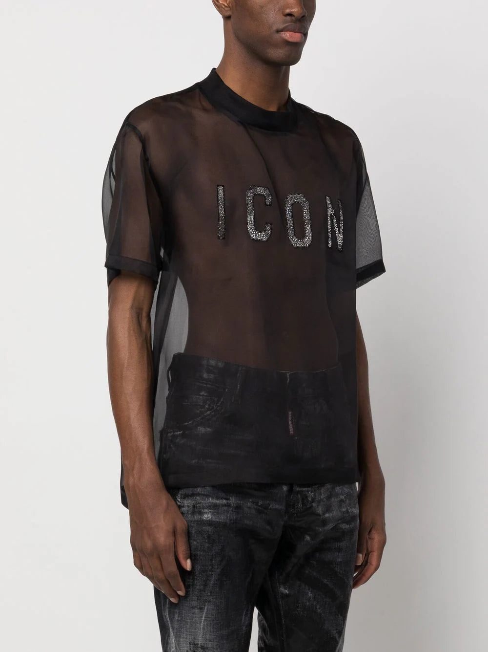 Embellished with the signature Icon logo in a crystal design, this sheer T-shirt from Dsquared2 showcases the brand's penchant for a bold aesthetic.