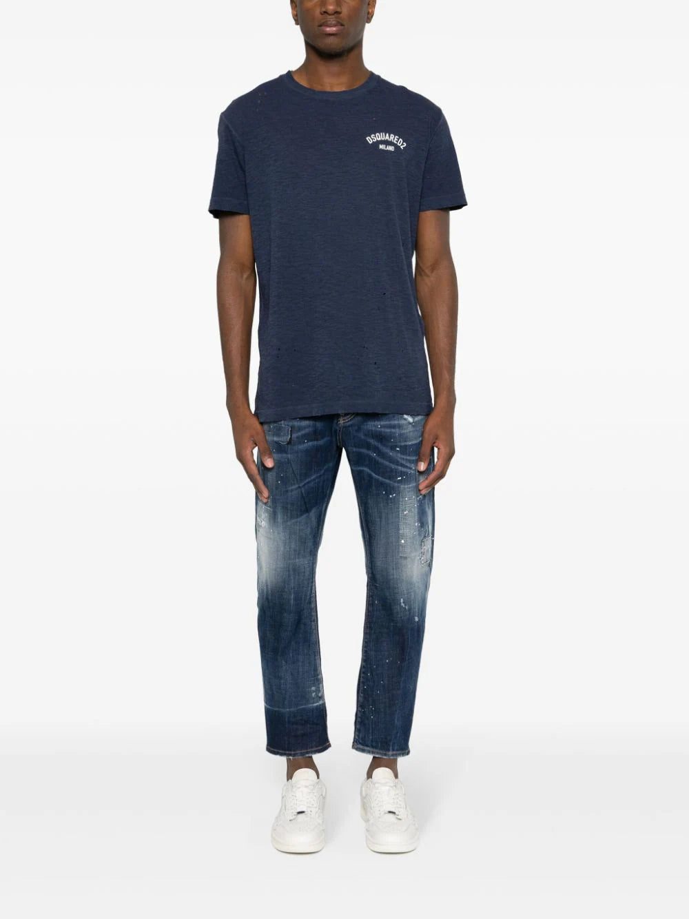 Dsquared2's T-shirt is minimally adorned with a curved logo print at the chest, keeping with the brand's enduring logomania trend. This crew-neck style is made with cotton jersey to a navy blue hue.