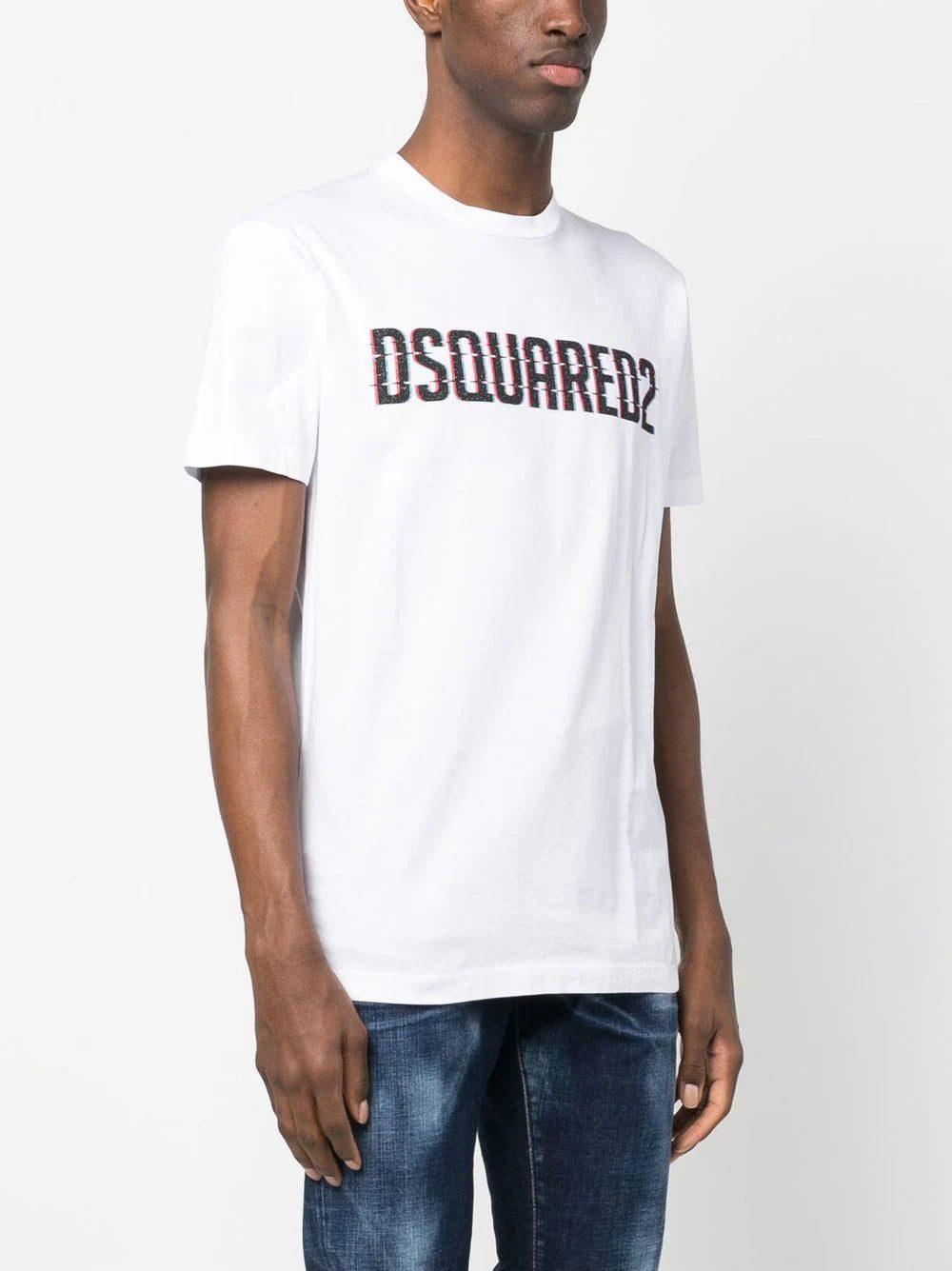 Made from soft cotton in Italy, this white short-sleeve T-shirt from Dsquared2 channels the Canadian brand's penchant for logomania thanks to a three-dimensional style motif printed at the front.