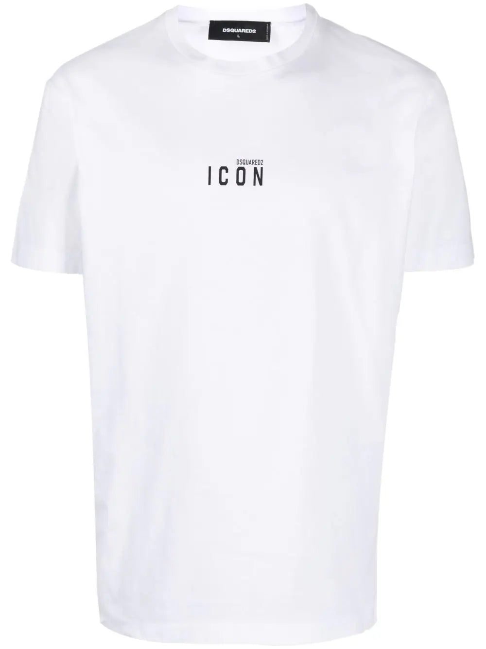 logo-print T-shirt from DSQUARED2 featuring optical white, cotton, logo print to the front, short sleeves and straight hem.