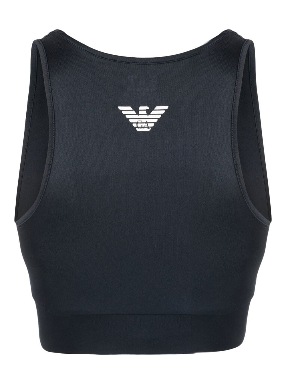 black logo print at the chest logo print to the rear cropped square neck racerback