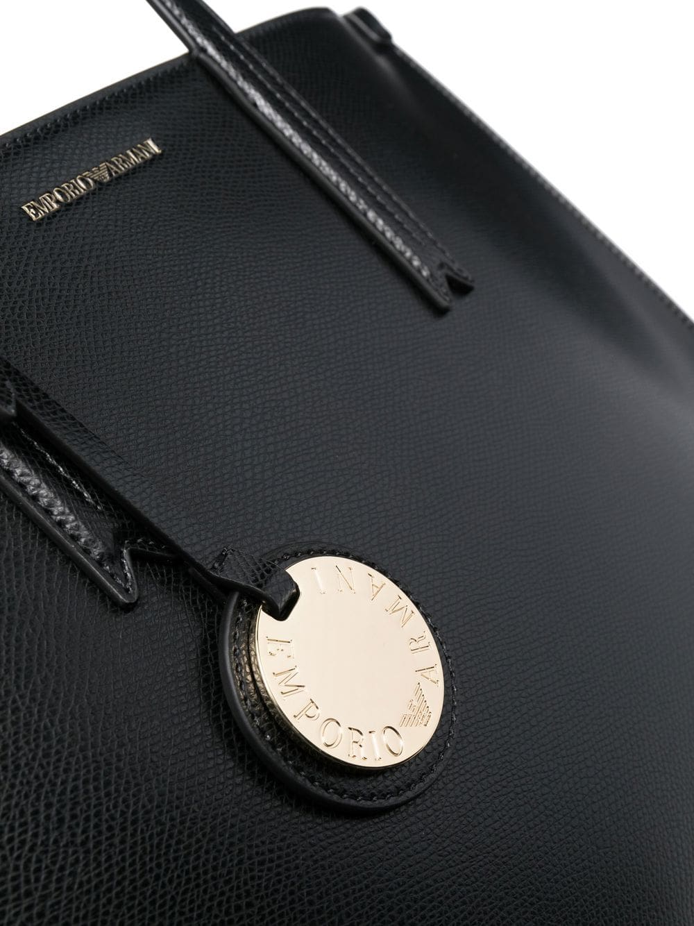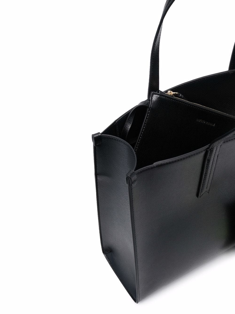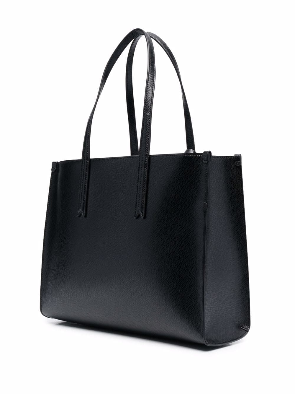 black faux leather grained texture gold-tone hardware logo tag gold-tone logo lettering two top handles top zip fastening removable pouch