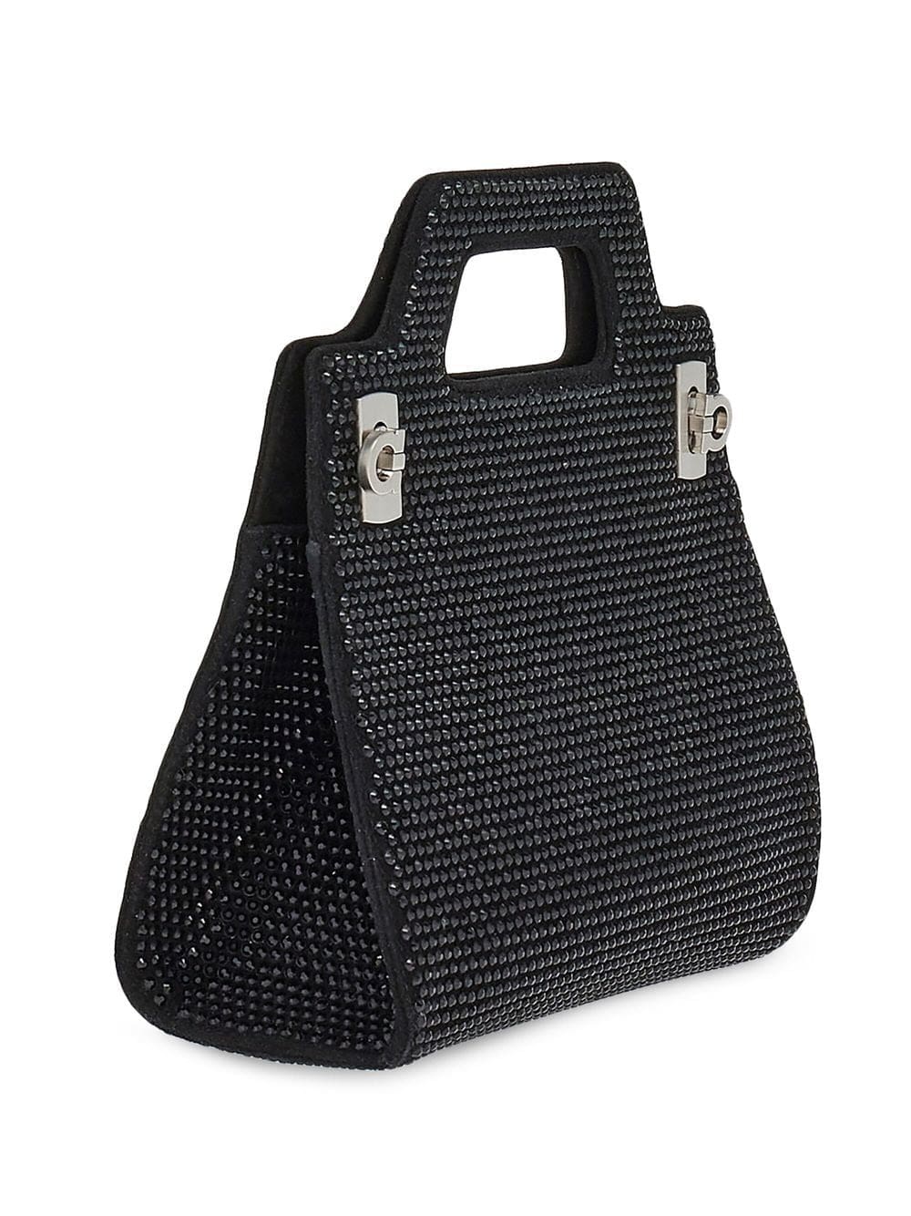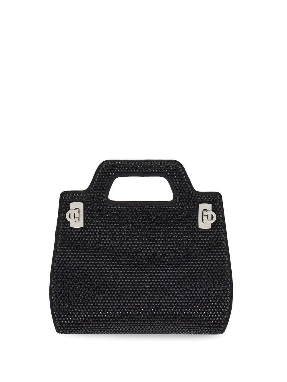 jet black calf leather crystal embellishment Gancini flip-lock fastening cut-out top handles main compartment