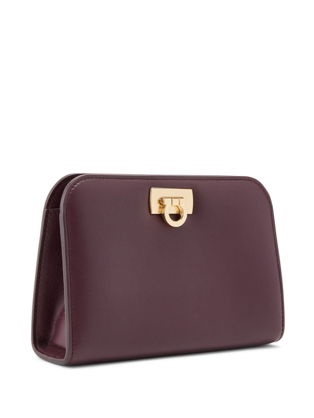 Ferragamo's Diana clutch bag features a monochromatic look highlighted by the iconic Gancini clasp. Made of leather, this model has a durable design that became famous for beeing created in 1990 for Lady Diana Spencer, Princess of Wales.