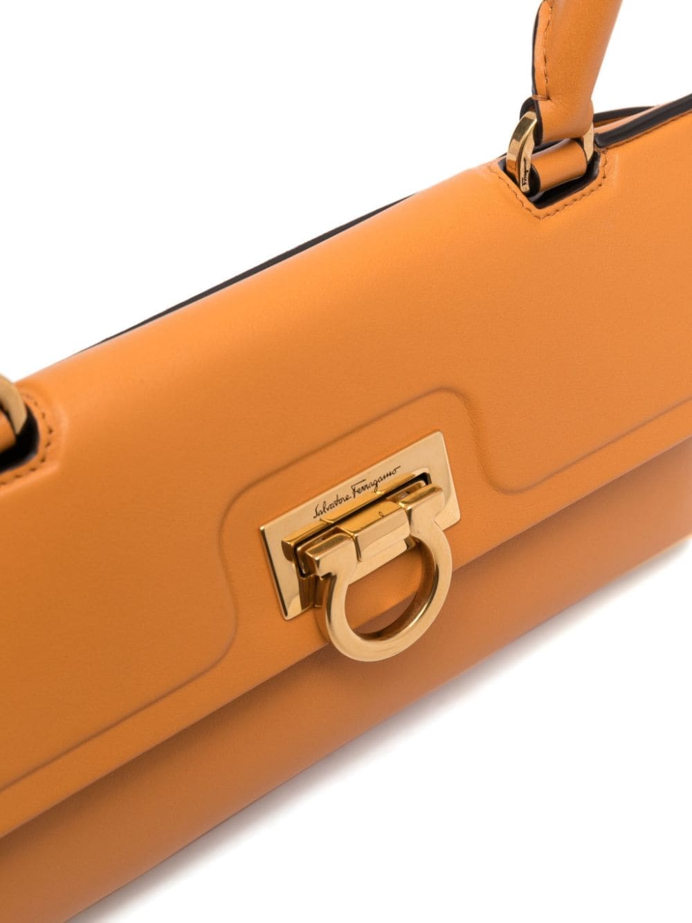 Salvatore Ferragamo shows off their expert Italian craft with this rectangular Gancini buckle closure shoulder bag. Forming part of the brand's SS22 offering, it is instantly recognisable thanks to a rounded shoulder strap and complimentary gold-tone hardware.