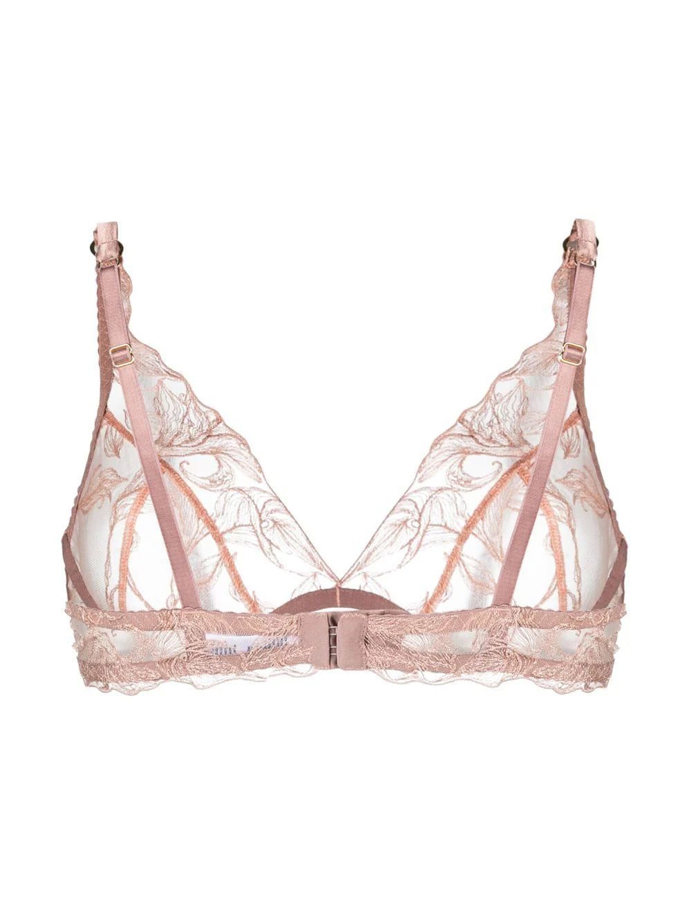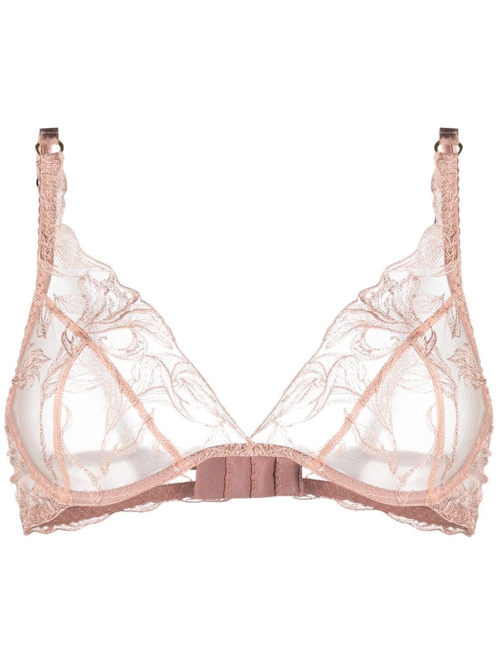 rose pink silk blend floral-lace detailing sheer adjustable shoulder straps rear hook and eye fastening underwire cup