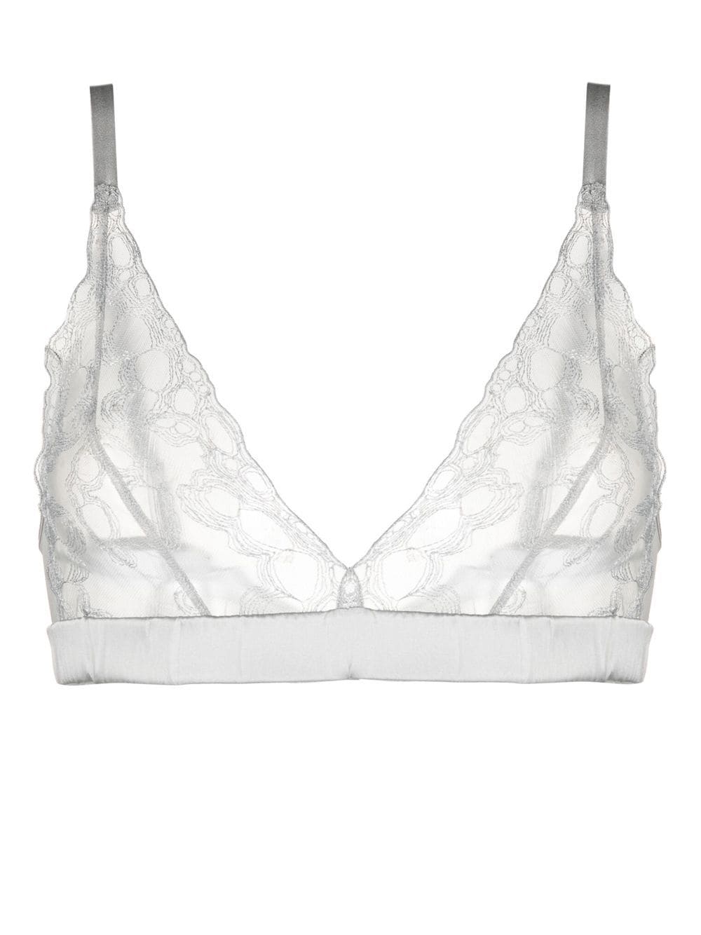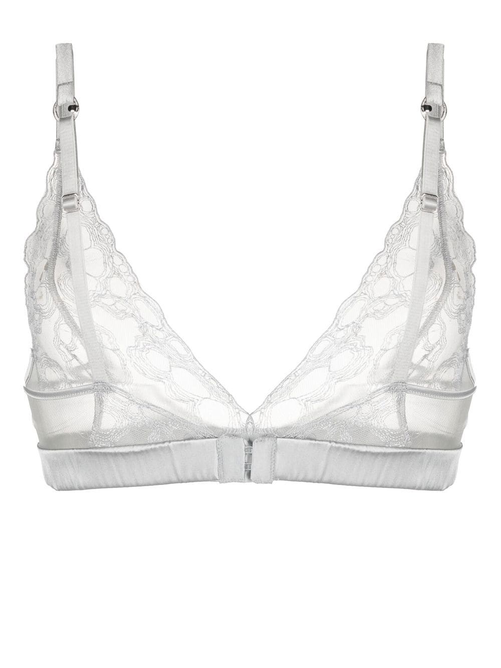 light grey silk blend sheer triangle cup adjustable shoulder straps rear clasp fastening