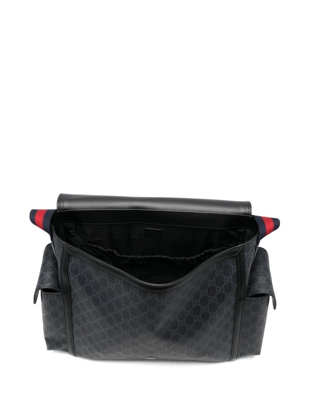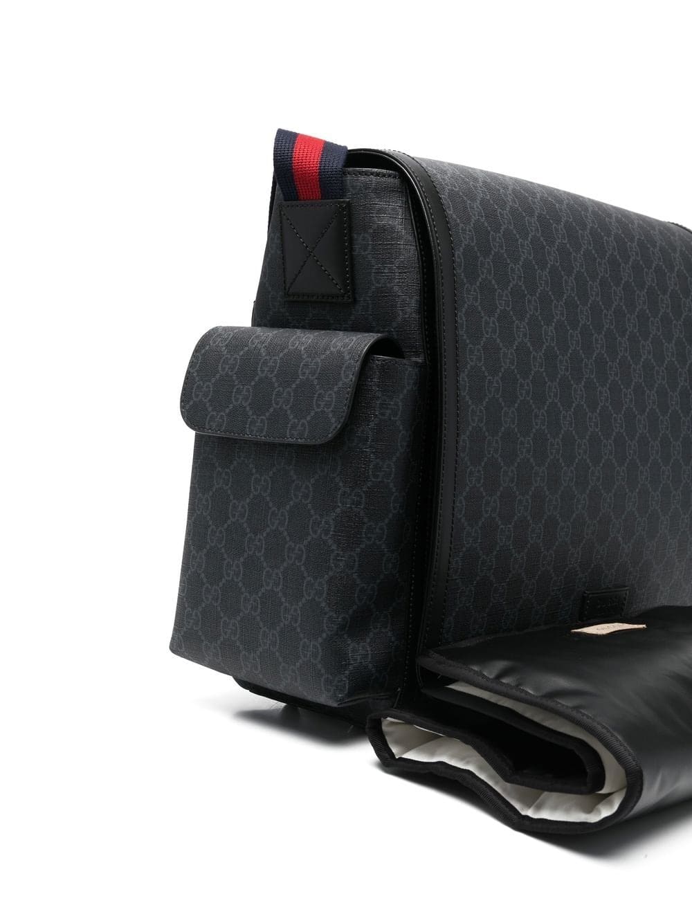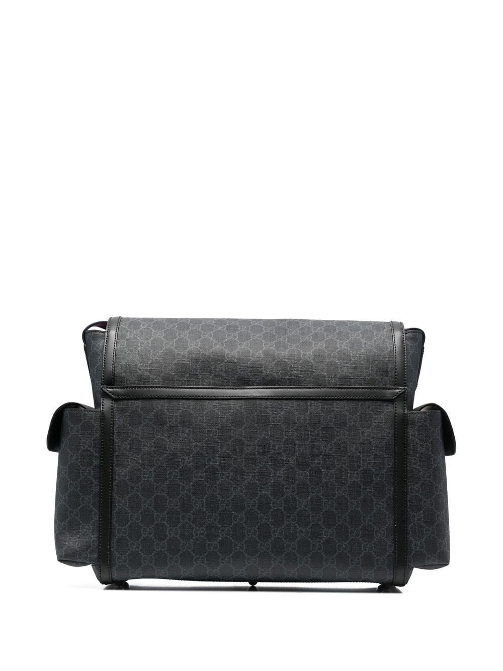 black calf leather adjustable shoulder strap foldover top with magnetic fastening GG Supreme canvas side pouch pockets internal slip pocket
