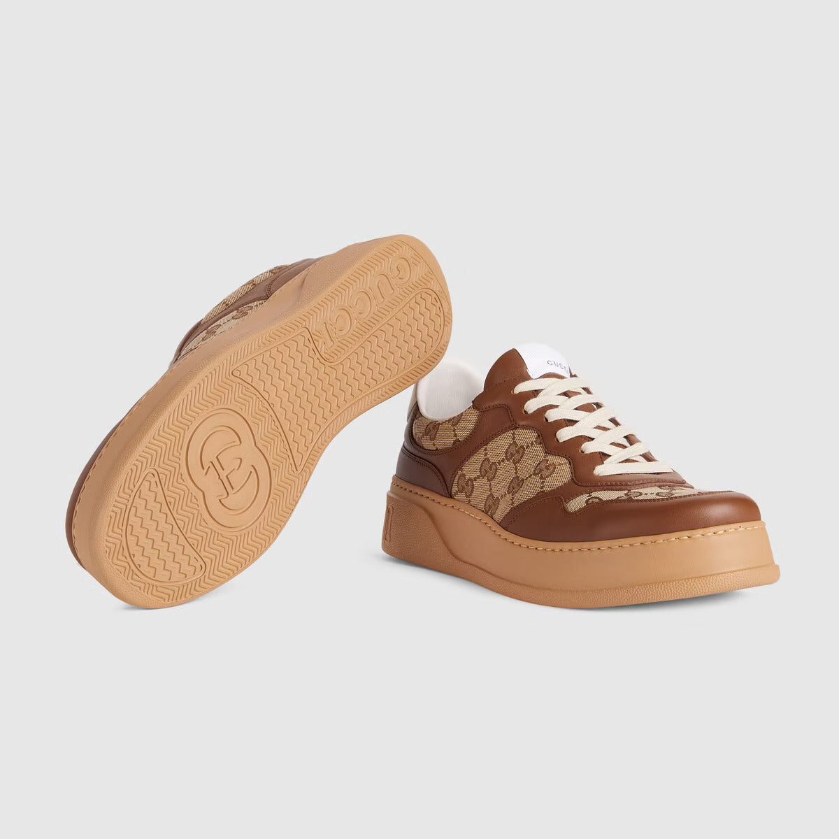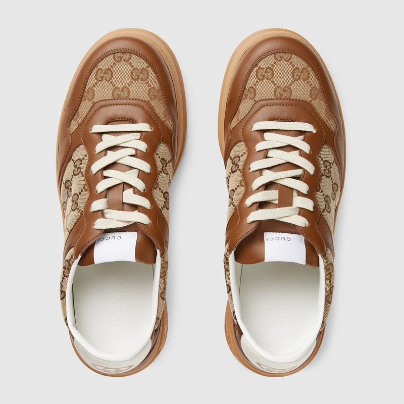 With a chunky silhouette, this sneaker plays with shapes, colors and materials to create a retro feel. With a defined rubber sole, the shoe is crafted from beige and ebony Original GG canvas with a tonal leather trim.