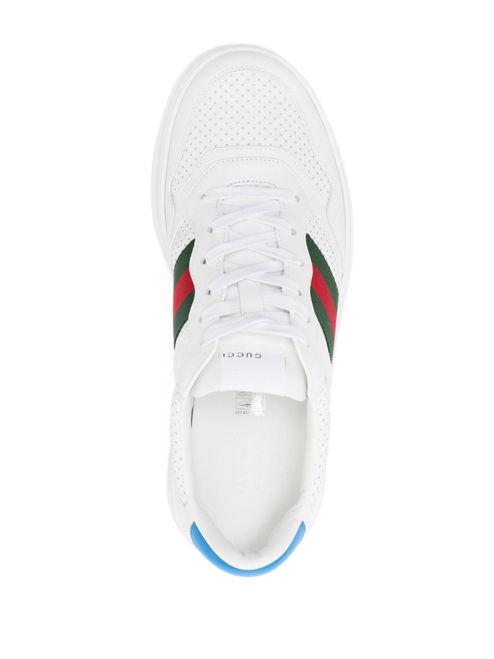 Gucci's signature patterns are a house mainstay found throughout each collection. A fine example are these GG embossed low-top sneakers, which are crafted from all-white leather and feature the iconic Web stripe printed across the sides.