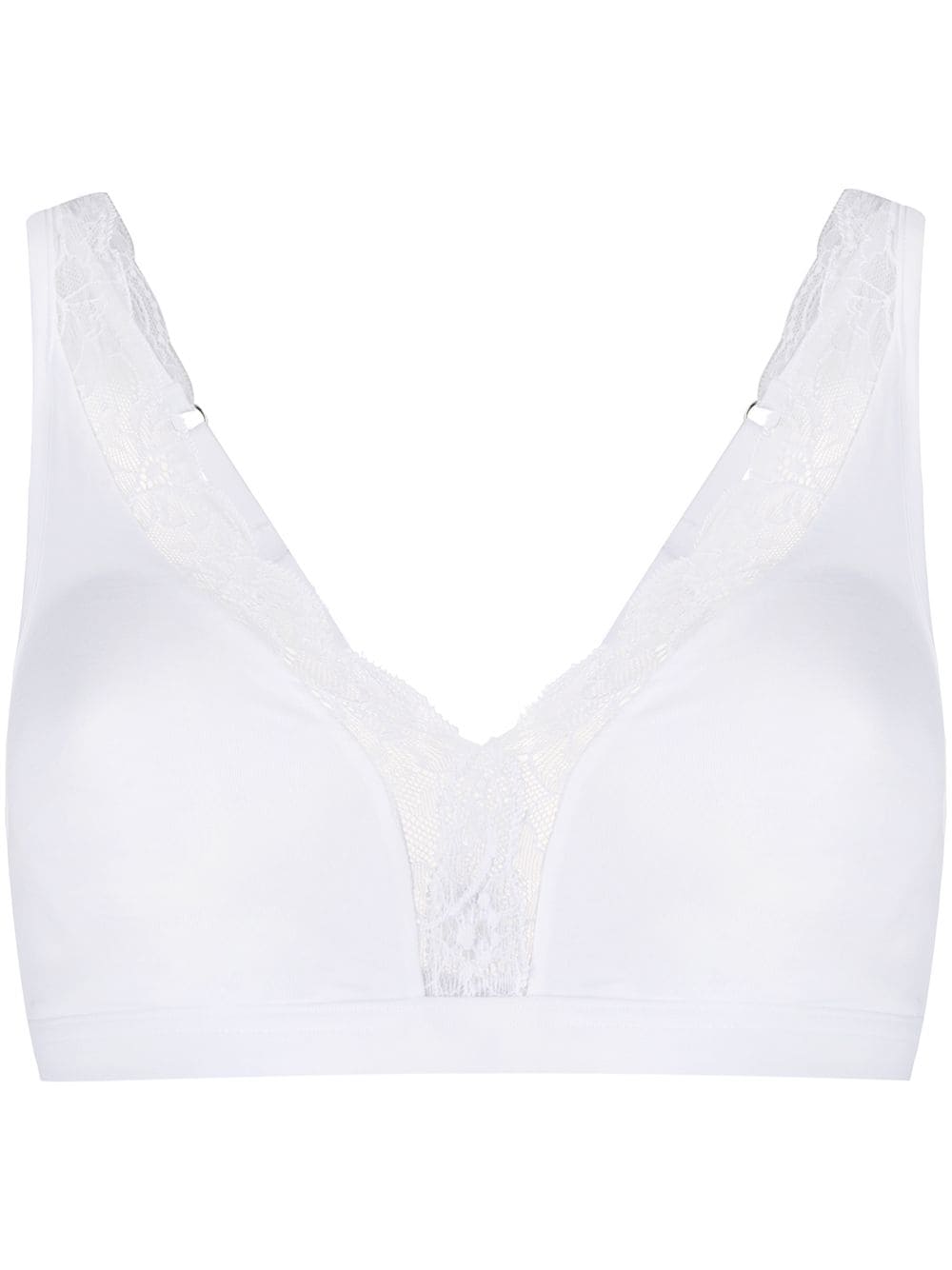 White cotton soft cup lace bra from HANRO featuring lace panels, adjustable shoulder straps and a rear hook and eye fastening. Underwear and lingerie must be tried on over your own garments.