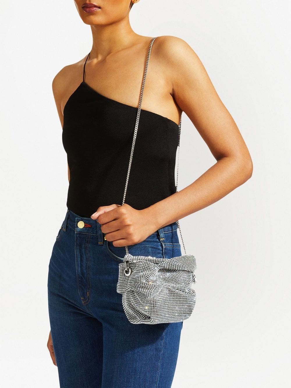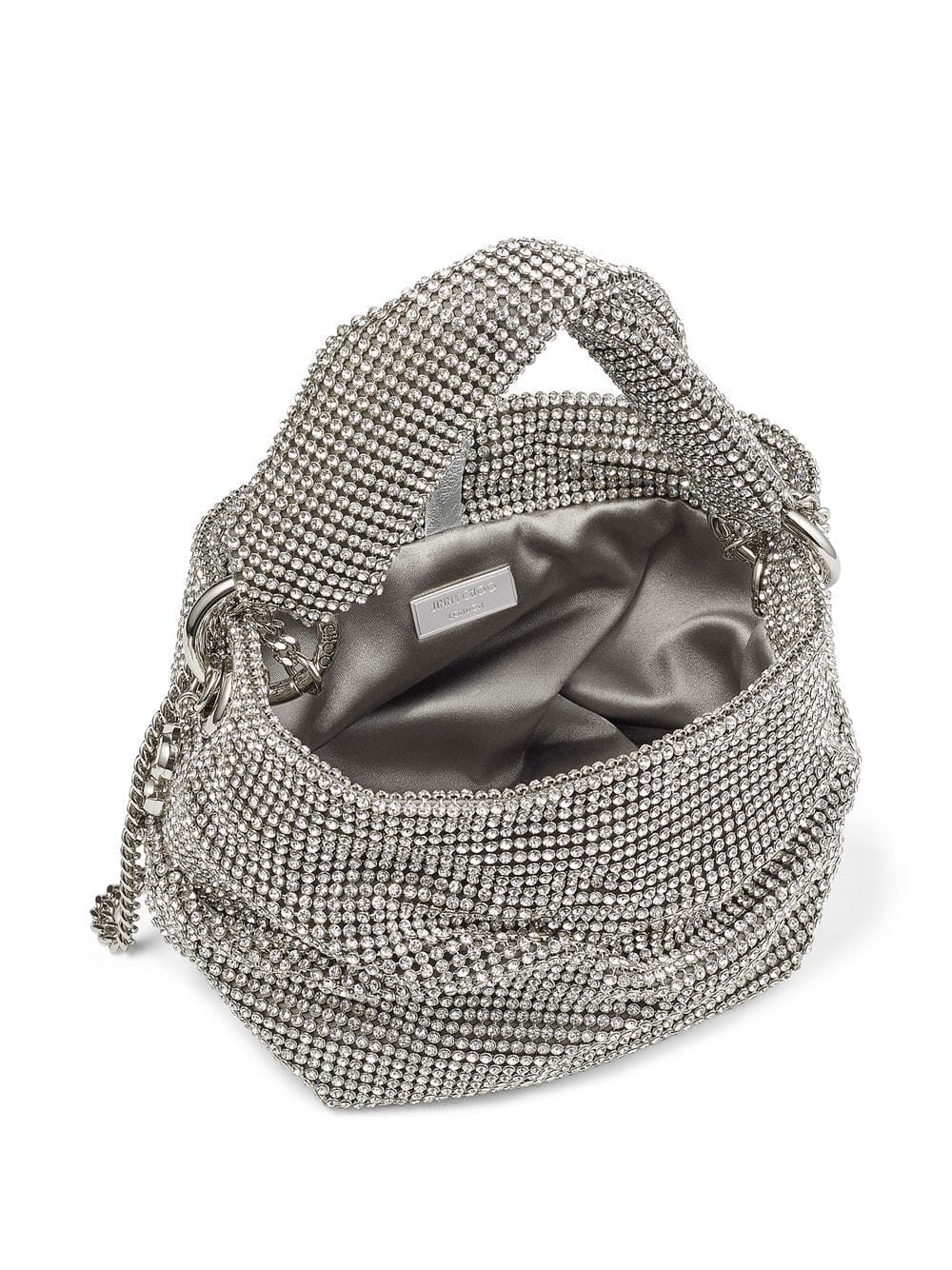 Jimmy Choo's Bonny bag is reimagined here with crystal embellishment. Appearing as an all-over pattern, this design adds a shimmering finish to the relaxed silhouette.