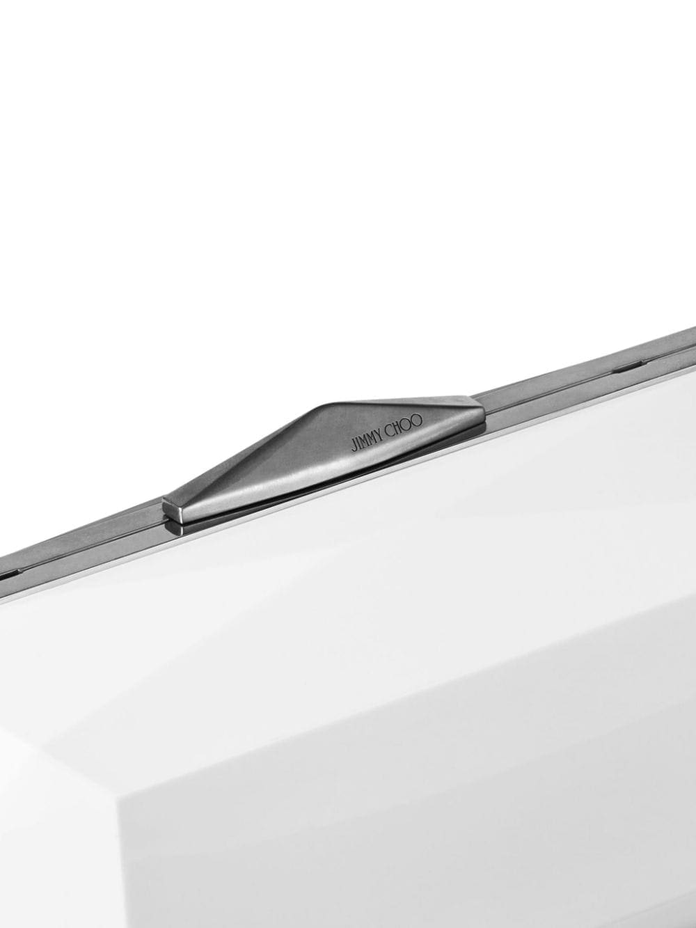 This Jimmy Choo Diamond Box clutch bag is named after its distinctive multifaceted silhouette. It's constructed to a black and white acrylic case that fastens seamlessly at the top with a signature Diamond clasp.
