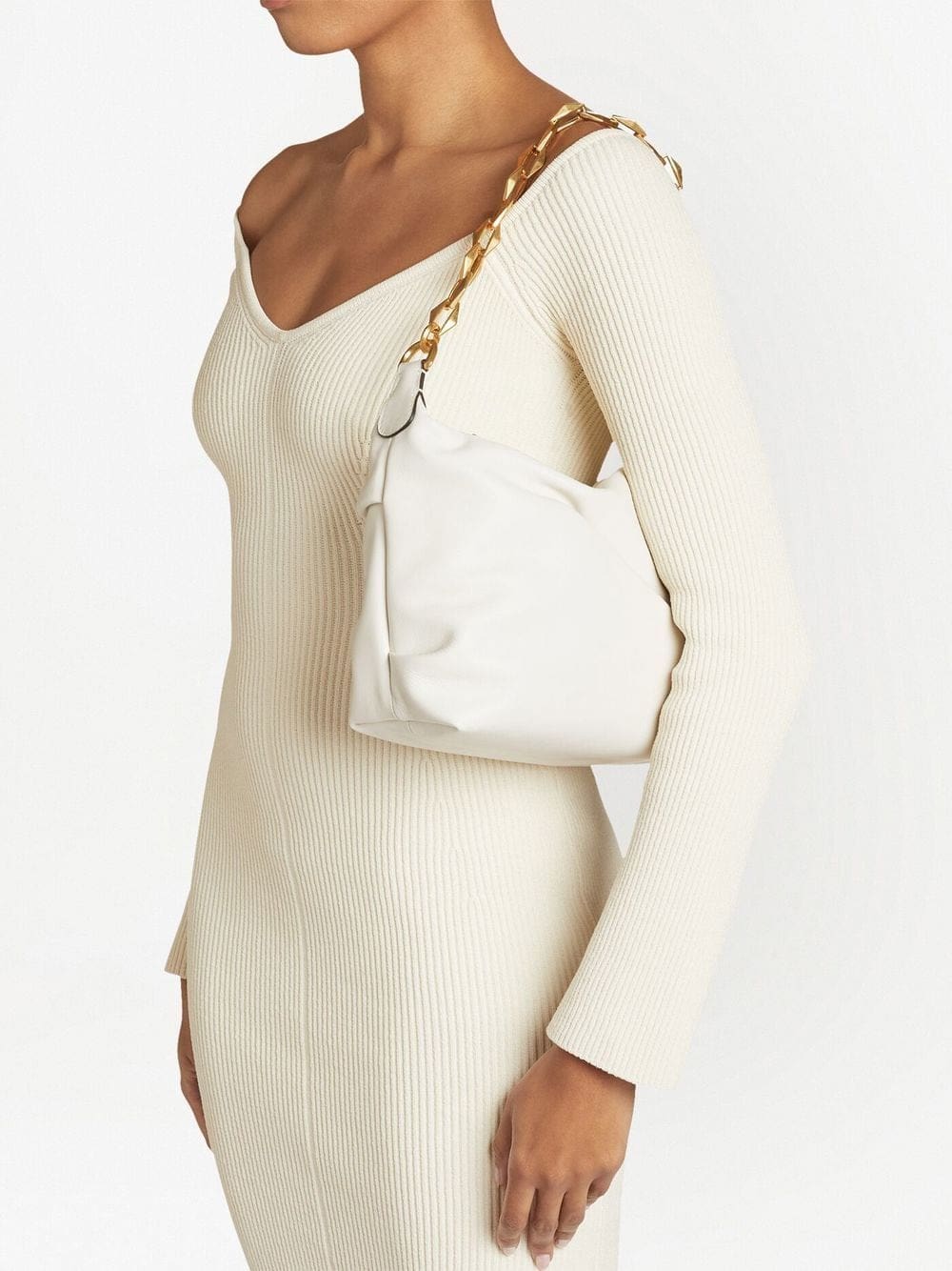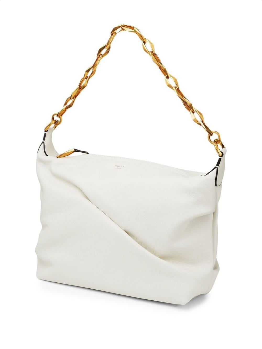 white calf leather gold-tone hardware pleat detailing gold-tone logo lettering top zip fastening single chain-link top handle detachable shoulder strap internal slip pocket