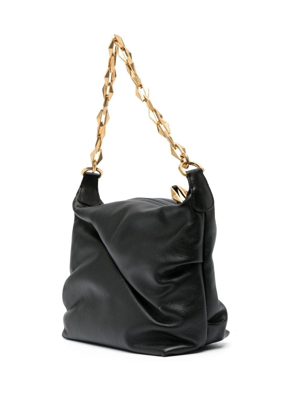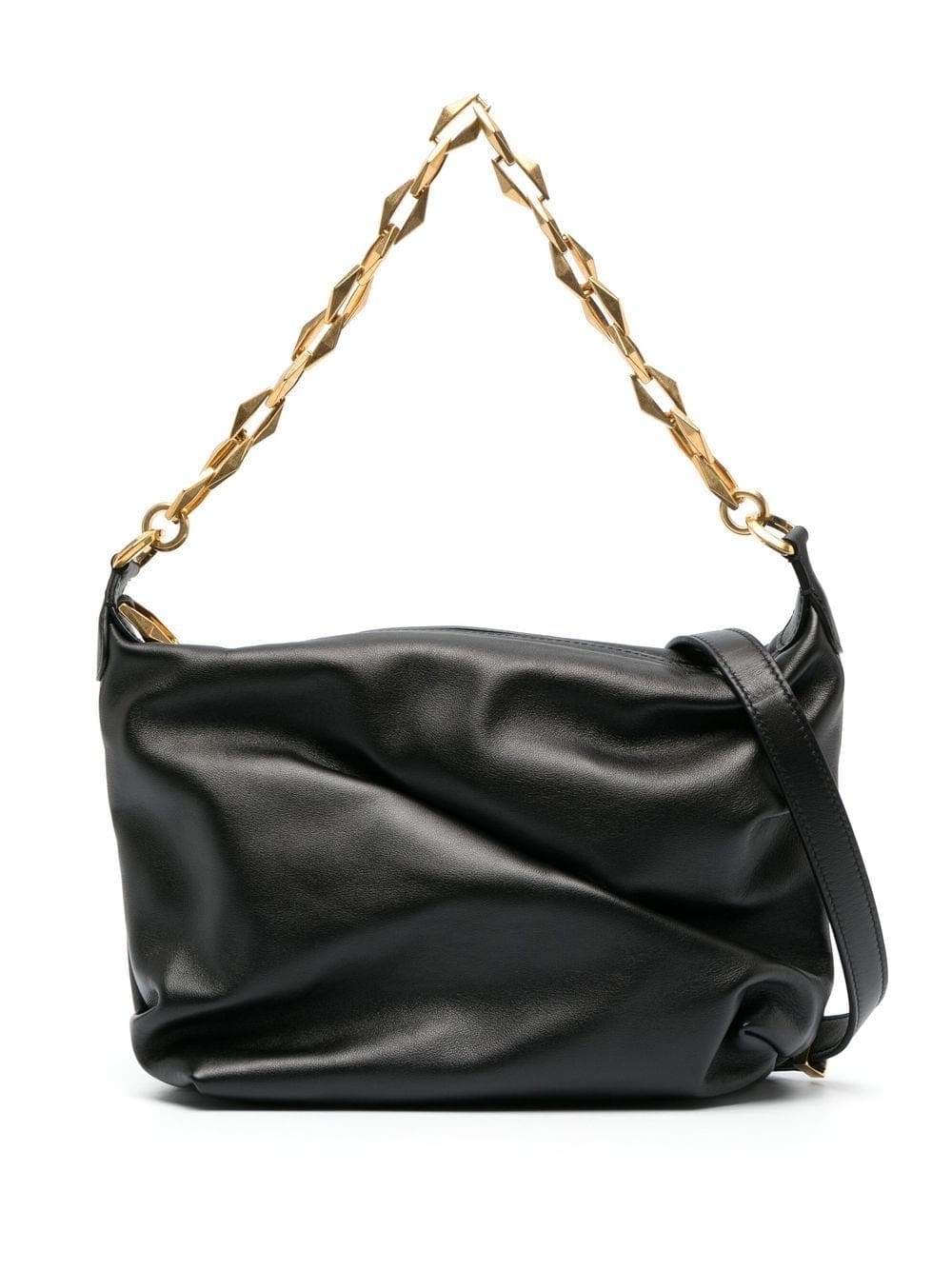 black calf leather grained texture chain-link shoulder strap top zip fastening main compartment